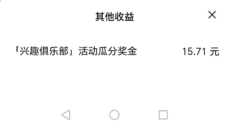 有点懵。忙碌了一天,刚上来,发现一个惊喜:兴趣俱乐部发奖了,而且还不少,15元。 说实话,我懵了,一时没想起来,这是哪个征文,回头翻了翻,原来是做发车视频的瓜分。 当时没准备做,嫌麻烦,后来有一天,忽然兴起,寻思做吧。没想到,瓜分这么多。 昨天迎财神,今天来了意外之喜。开心[呲牙]