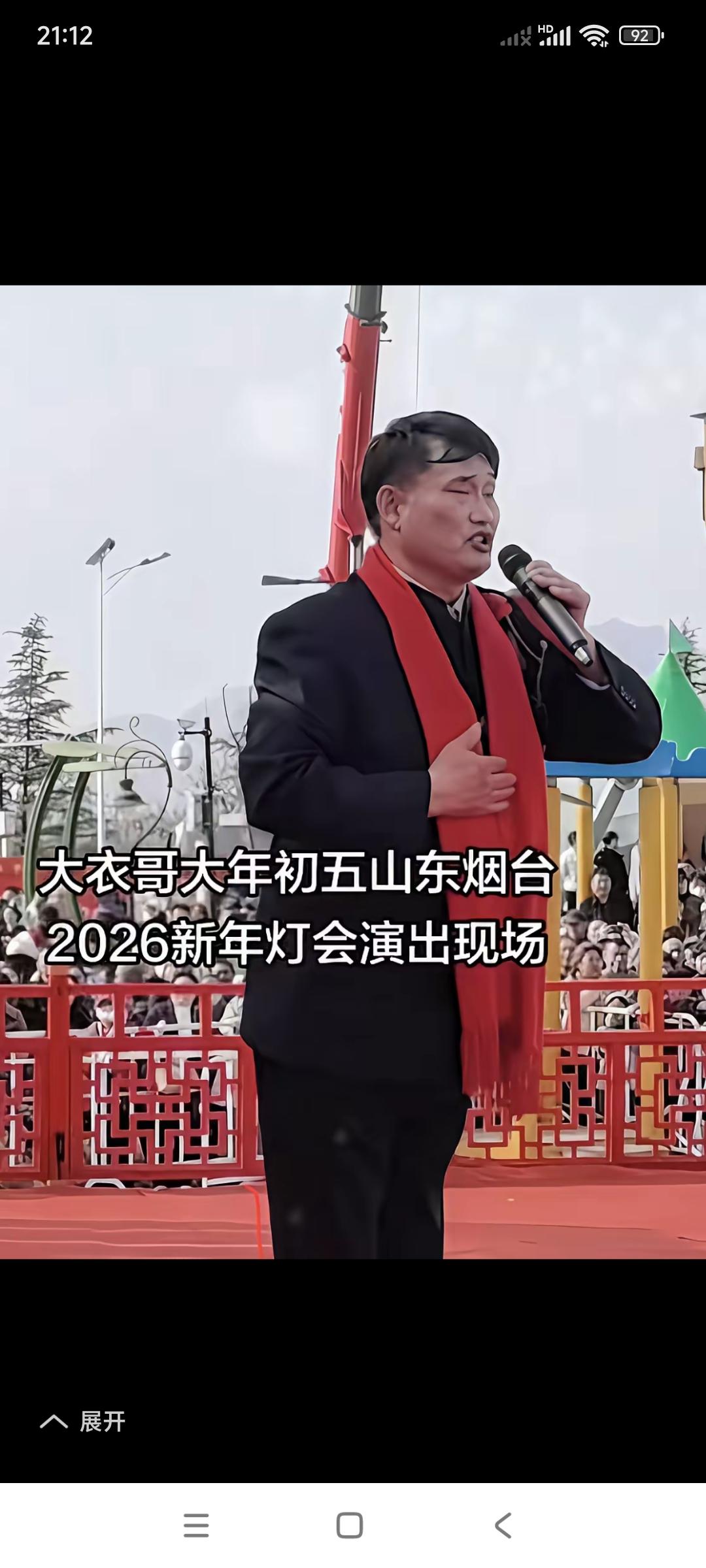 真佩服大衣哥朱之文。 刚过了年儿,大年初五到烟台唱了三首歌儿。 据说18个w