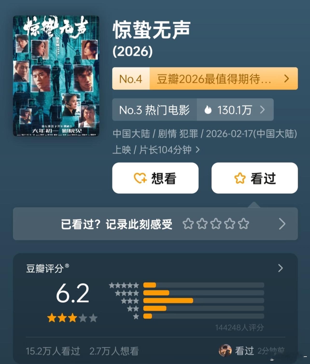 豆瓣评分现在还有多少可信度《惊蛰无声》开分6.3,现在又降到6.2