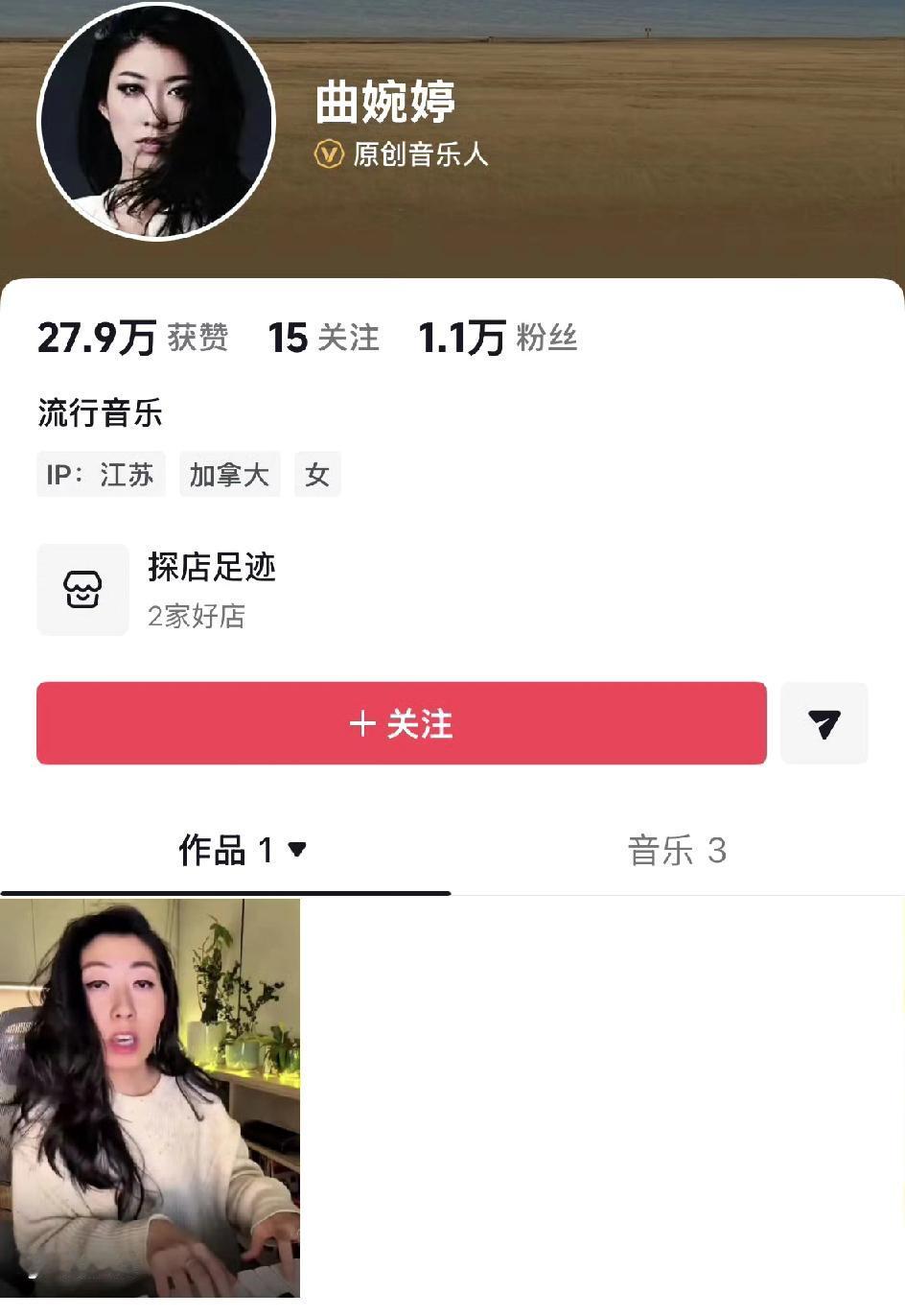 咱就说这届网友的力量有多夯, 上午刚看到曲婉婷登上热搜说她在抖音开通账号了,下午就看见热搜说她账号没了[捂脸]! 从突然出现到人间蒸发只用了几个小时而已! 曲婉婷在抖音注册了账号发布了拜年视频,身着中国传统红装,说着拜年的吉祥话,介绍着她的新专辑,可是评论区的画风可就不一样了,估计她看了都得瑟瑟发抖! 果然没顶住,很快账号就注销了! 网友们是有记忆的,对伤害过老百姓的人不会放过! 不要再试探了! 万事有因果,有得必有失!