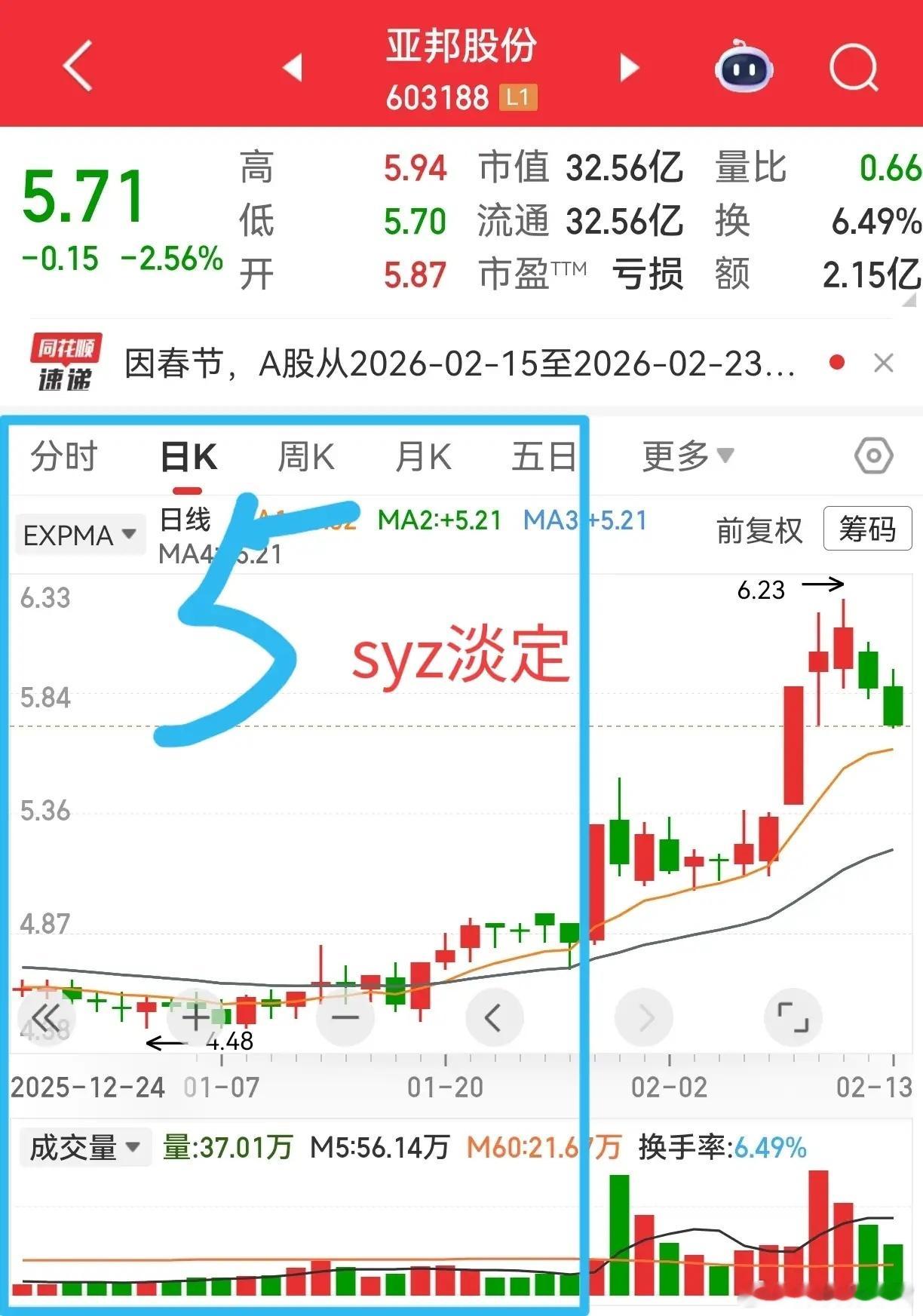 亚邦股份:金针探底+生命线拐头,趋势反转,次日涨停