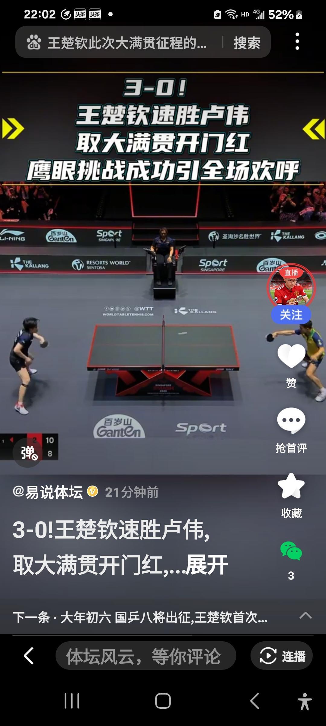 头哥3:0战胜卢伟,顺利晋级下一轮! 头哥不愧是世一,第一局直接把卢伟以11:2打崩了,虽然第二局和第三局卢伟展开了顽强阻击,但这种阻击对头哥而言带来不了什么杀伤力,头哥哐哐哐又连下两城,3:0横扫对手,引起现场球迷一阵欢呼!