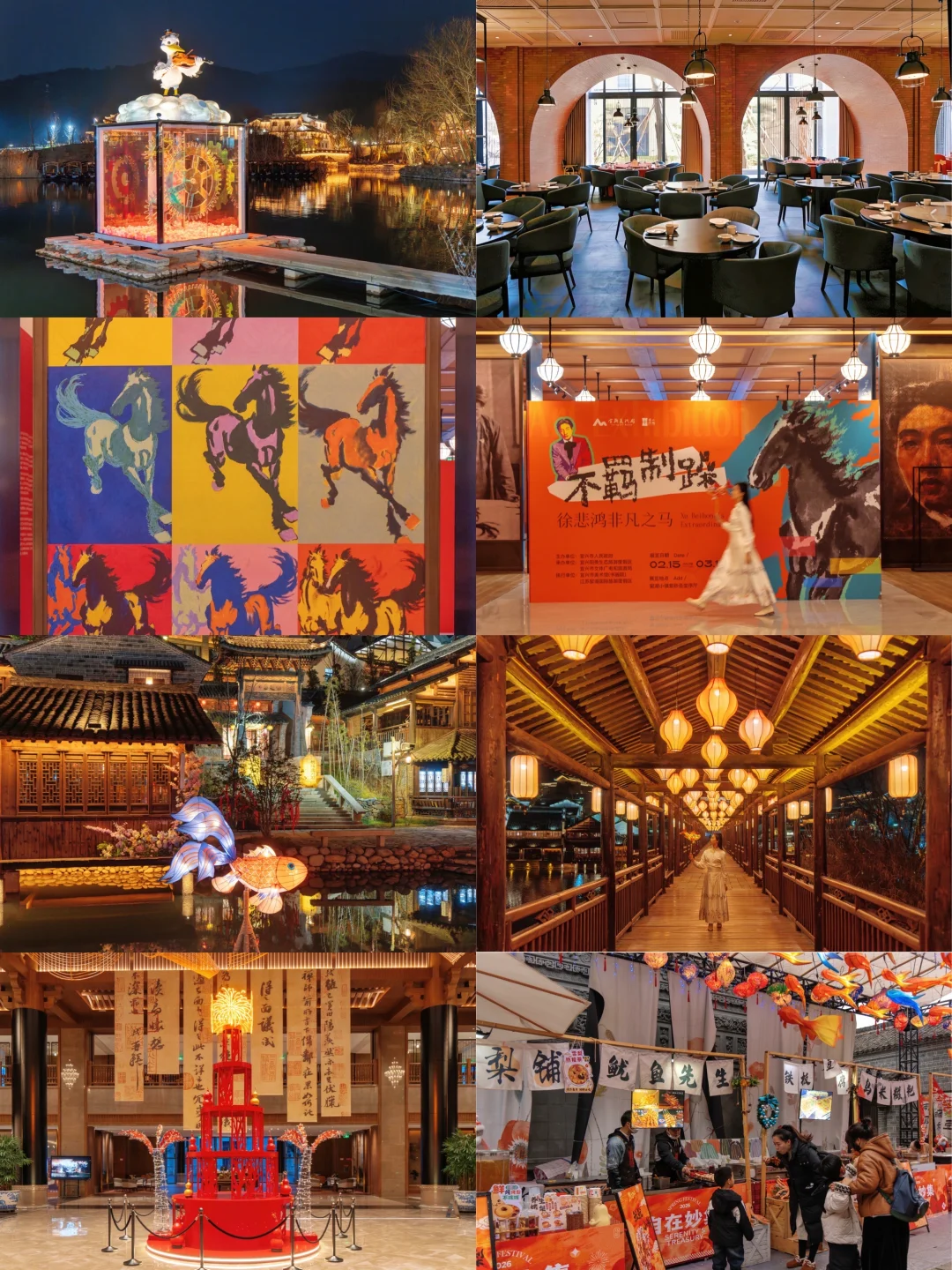 窑湖大酒店:出门就是小镇,推窗就是山水,现正展出徐悲鸿笔下的骏马,不去博物馆也能感受国画魅力