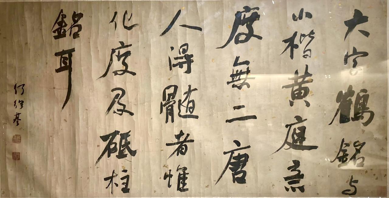 【何绍基】释文:大字《鹤铭》与小楷《黄庭》,意度无二,唐人得髓者,惟《化度》及《砥柱铭》耳。款识:何绍基。钤印:何绍基印(朱)、子贞(白) 清代,纸本。60.5x119厘米。