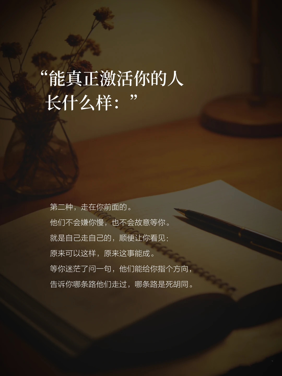 他们不会嫌你慢,也不会故意等你。就是自己走自己的,顺便让你看见:原来可以这样,原来这事能成。等你迷茫了问一句,他们能给你指个方向。