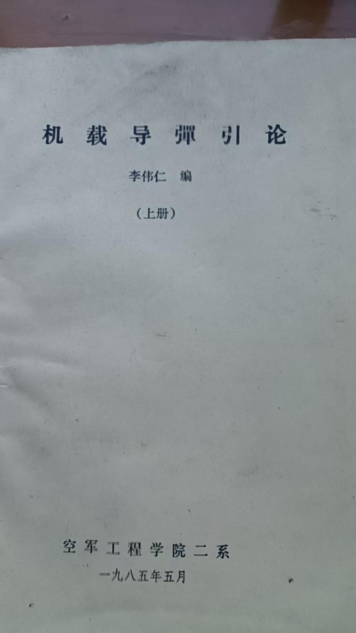 《射击瞄准具讲义》 《23毫米3型航空机关炮》 《机载导弹引论》 《航空外弹道学》 《炸药讲义》 《空中射击学教程》 这个当年上课学习过的一些课程,过年整理杂物,翻出来给小伙子看看。虽然技术已经非常落后了,但是系统框架没有太大变化,解决问题的思路也依然具有参考价值。