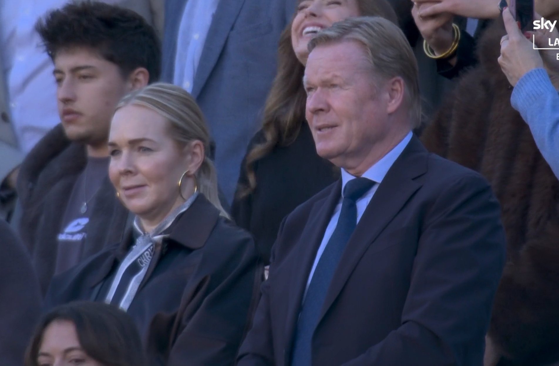 科曼和妻子在比赛看台上观看今天的比赛。巴萨vs莱万特至死不渝红蓝魂巴萨