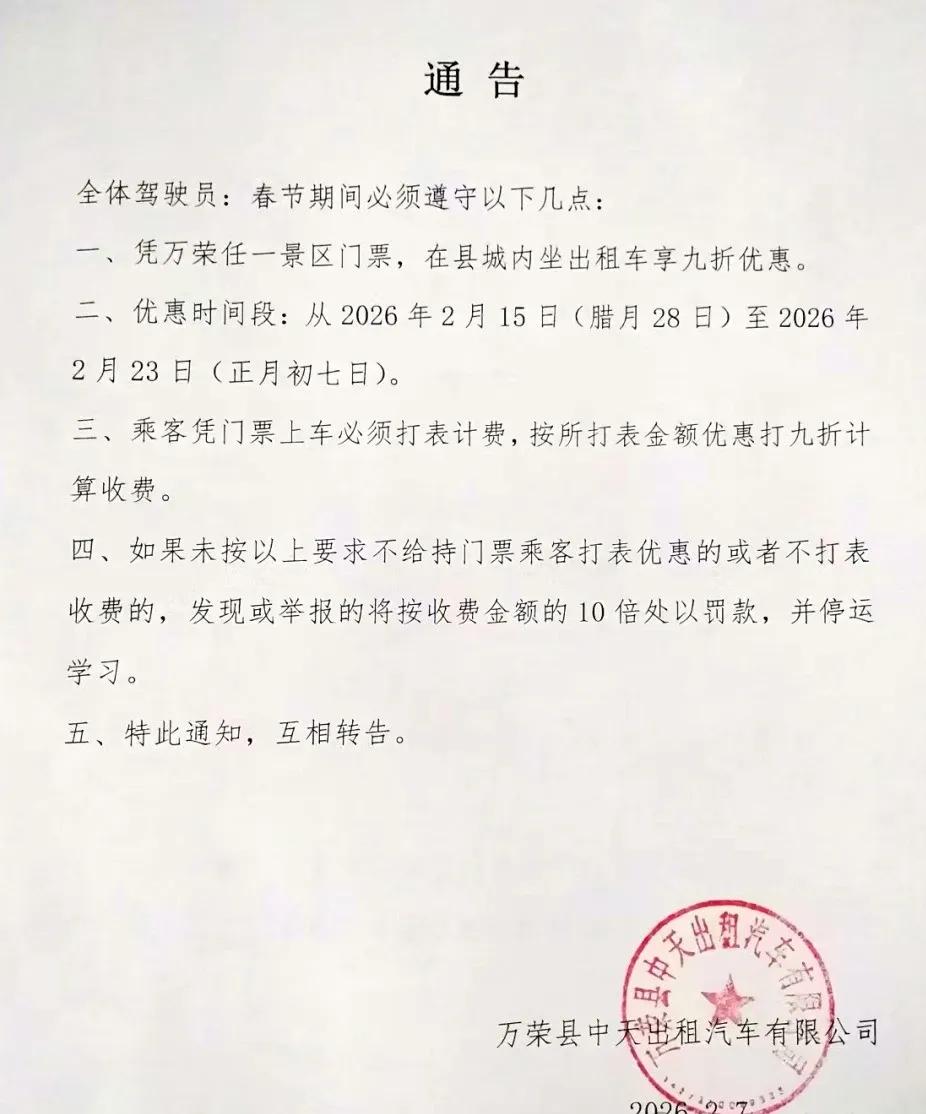 山西人太能欺负自己人了!地方请客,司机买单,山西运城又一次被捅上热搜,却让本地人生生被逼到墙角。山西运城去年底才刚因环卫工“电子镣铐事件”事件备受争议,这次又在运城万荣县出了另一档子闹心事。当地为了吸引外地游客来旅游,万荣文旅局大手一挥,出台了一份“门票抵优惠券”活动,从腊月28到大年初七,旅客只要凭当日万荣任意景点门票,就可以在县城内合作酒店、餐饮和出租车消费享9折优惠。 这个优惠政策令外地游客直呼格局够大方,却令当地出租车司机叫苦不迭。理由是万荣文旅局只要求司机给游客打折,却让司机全额承担这部分损失,没有给司机提供应有的补贴。如果司机不接受,一旦被查到或遭投诉,则会被处以10倍罚款并停运。这车司机跑不是,不跑更不是,真的是左右为难。 不是司机不愿意为地方做贡献,只是这个贡献有些超出当地司机的承受范围。说实在的,作为一个山西人,很清楚山西大多数地方,尤其是山西南部的运城,历来经济比较落后,常年排在全省倒数,地方老百姓收入普遍不高。 由于交通不便等因素,平日里来旅游的外地人本就不多。就拿万荣县出租车司机来说,平常一天进账就200左右,除去100块雷打不动的份子钱,加上充电加油等费用,一天收入可能就100块,甚至都不到100块。要不是地方消费水平远低于大城市,出租车司机一个月3000块出头的收入,如何养家糊口? 过年这一周,就是万荣这些山西18线小县城一年当中相对最红火,也最能赚钱的时候,其实也就是平时能多进账100-200而已。当地文旅局领导却能一张口,就要从司机身上割走一块肉让给游客,美其名曰地方请客,自己的面子是有了,可买单出血的却是底层司机。 这种地方慷他人之慨的举动,就是普通山西人都表示难以接受。老百姓生活本就不易,好不容易赶上过年赚点辛苦钱,文旅局就算想借机招揽游客给地方做贡献,首先也应该是地方和文旅局自己出钱,而不是强行把负担压到底层老百姓头上。这样只顾面子风光,不顾里子漏风的所谓优惠政策,还是不要也罢。