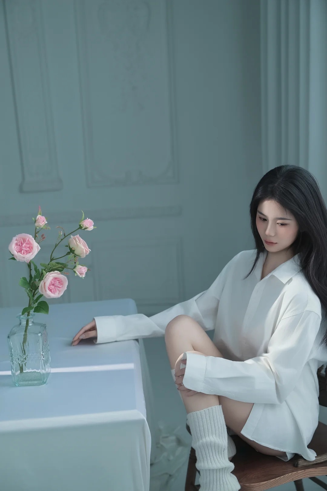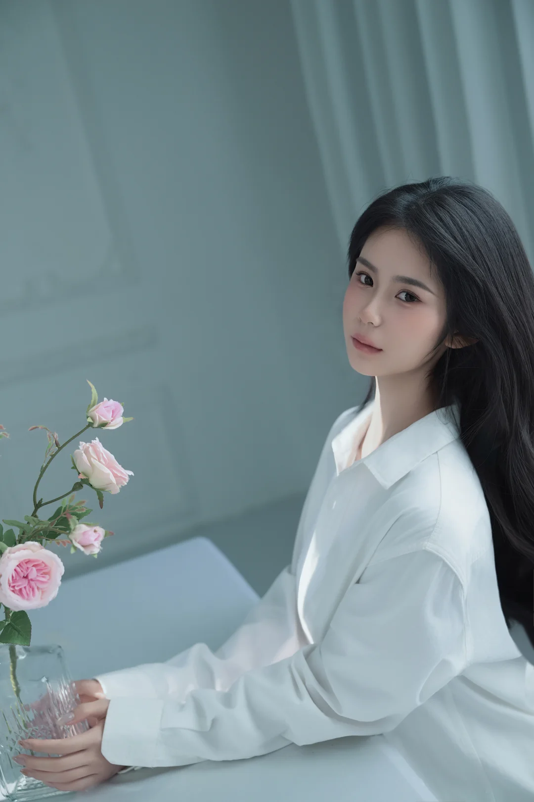白衬衫+玫瑰|把纯欲感焊在身上的写真太绝了