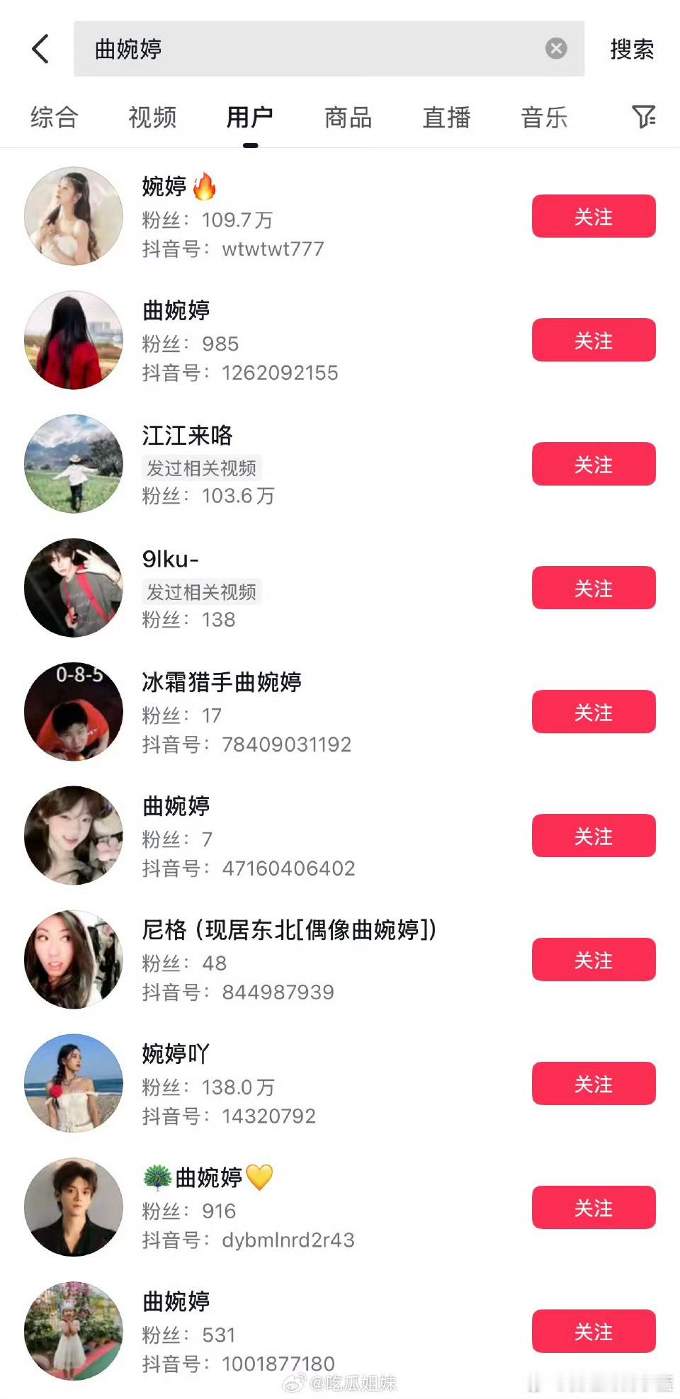 曲婉婷上了热搜立马就把抖音号换头像了,现在你直接搜索曲婉婷三个字,是看不到的,空