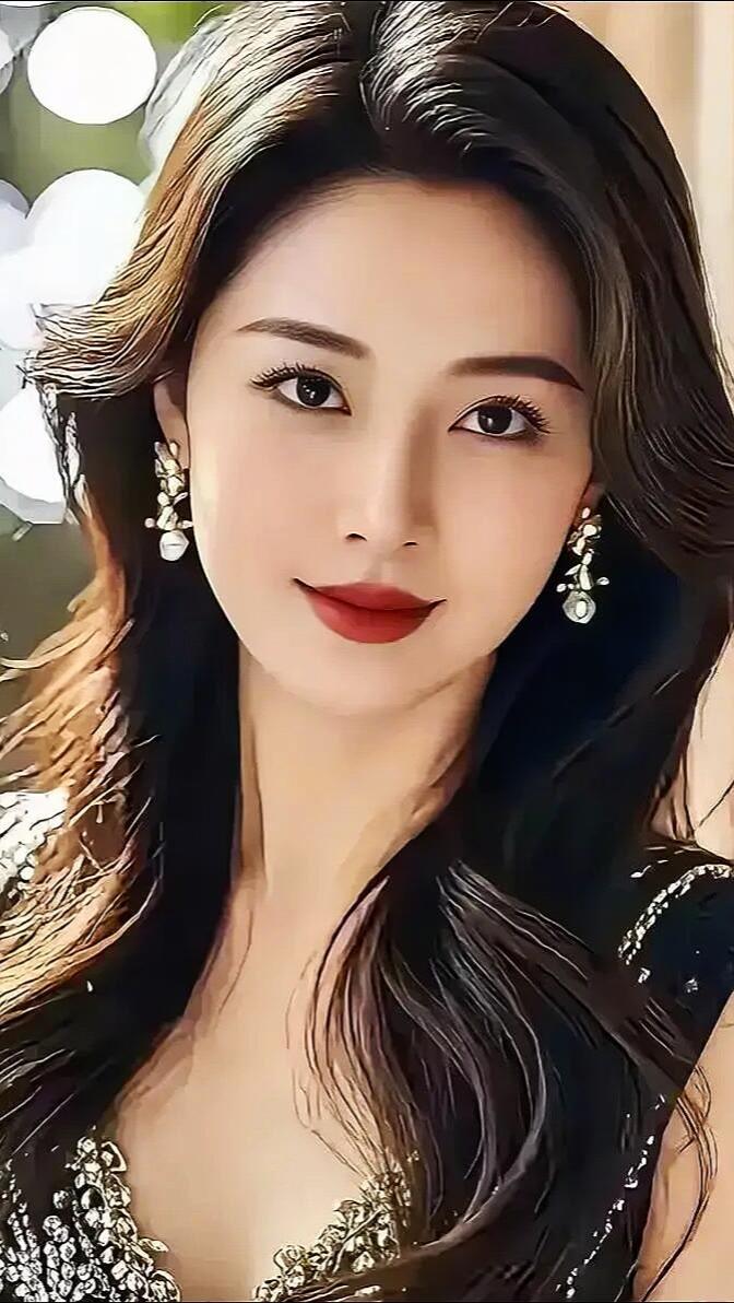 优雅红唇,闪耀耳环,黑裙闪耀,女神范儿十足!