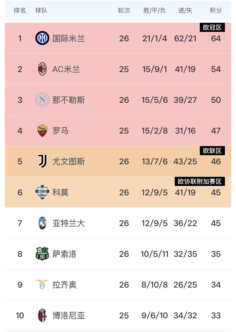打脸,单线就这水准?意甲第26轮那不勒斯客场1:2被亚特兰大逆转,遭遇两轮不胜,积分依然为50分排在第三,落后榜首的国际米兰多达14分,仅仅领先少赛一场的罗马3分。 孔二愣子的近期的日子着实不舒服,欧冠被淘汰出局,意大利杯同样被淘汰。处心积虑的回归单线征战的孔二,本想全力去争冠,结果却惨遭打脸,遭遇尴尬的两轮不胜,积分反而被榜首拉大,身后的追兵却穷追不舍。再这样继续下去,孔二的球队或将无缘下赛季的欧冠,毕竟身后的罗马、尤文图斯和科莫积分与那不勒斯相差不大。 孔二愣子这回该如何甩锅了呢?继续喷俱乐部,还是喷老板,亦或喷其他,让我们拭目以待。 在争冠的路上卫冕冠军那不勒斯基本出局,国际米兰必将全力冲刺联赛冠军。