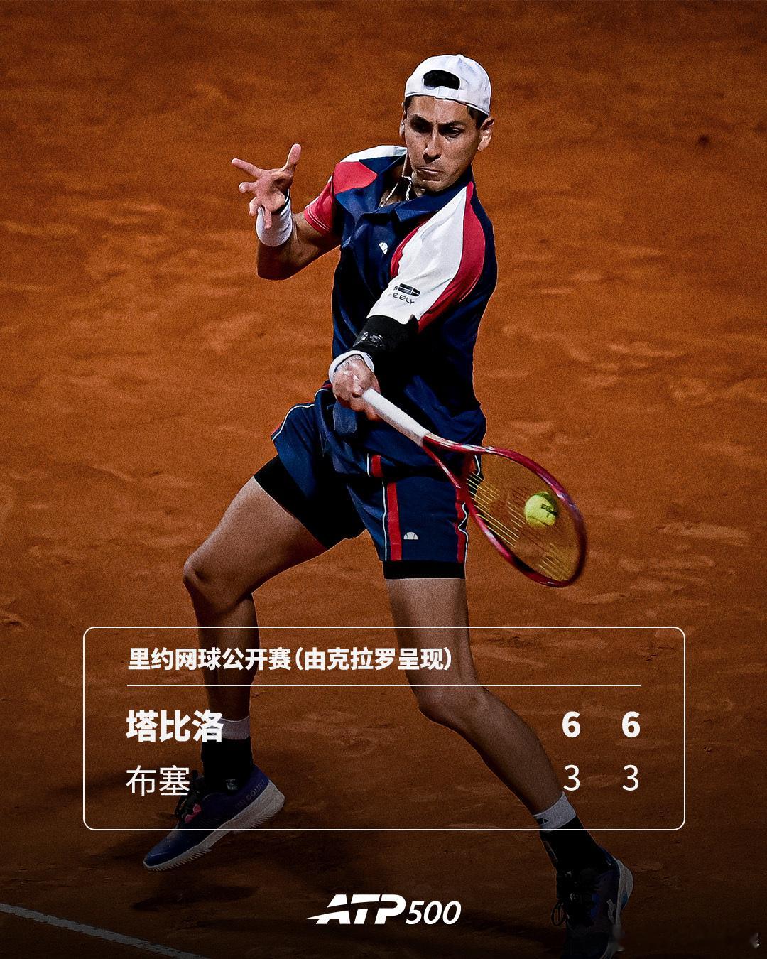 ATP500里约网球公开赛(由克拉罗呈现)半决赛,塔比洛以6-3 6-3战胜布塞,职业生涯首进500赛决赛,第6次跻身巡回赛决赛,将冲击最高级别单打冠军。
