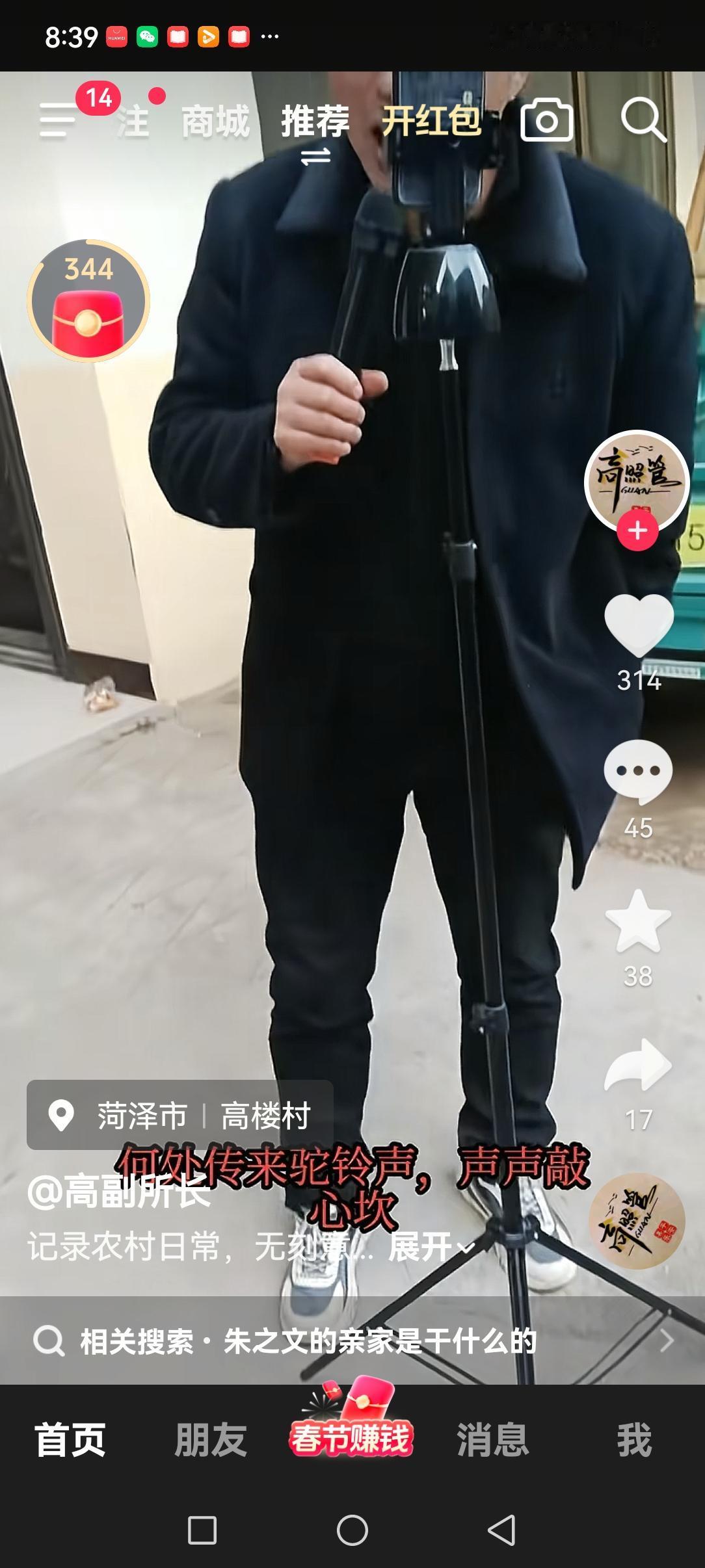 大衣哥的亲家,朱雪梅的老公公竟然也入驻抖音,开起来了直播!难道他要成为第二个陈亚楠? 刷到朱雪梅的老公公手拿话筒,对着手机深情高歌,不由得吃了一惊! 这还是大衣哥口中朴实的老农民吗?看来他与大衣哥结亲早有预谋呀! 听说大衣哥这亲家两个儿子,娶大衣哥女儿的是大儿子,小儿子还未成家。 要知道在山东菏泽彩礼可不是一般的高,普通人家娶个媳妇就得掉层皮,两个儿子的家庭负担更是重上加重。 想方设法在网上多挣点钱也情有可原,只是不知道网友会不会支持?难道大衣哥在女儿婚前没有和这个亲家约法三章,毕竟有陈亚楠这个前儿媳的前车之鉴? 大家觉得大衣哥这亲家能成为新进网红吗?