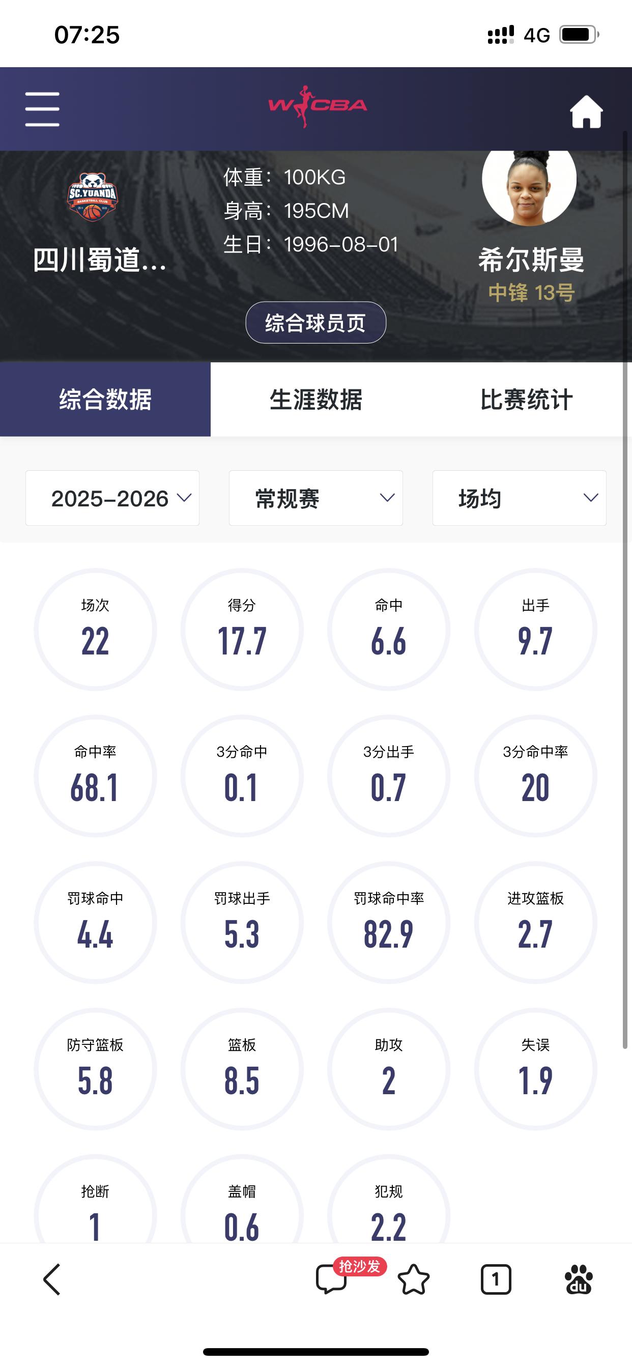 四川女篮一外援合同到期,已转会! 在前天,四川女篮的大外援希尔斯曼个人发文,表示自己与四川女篮的合同只到2025-2026赛季常规赛 接着在昨天北京很晚的时刻,西班牙女篮甲级联赛队伍瓦伦西亚女篮官宣四川女篮外援希尔斯曼加盟。 这个希尔斯曼在加入四川女篮的本赛季前半段,因为状态和整体表现的原因,一直受到四川女篮球迷的质疑,直到后面发挥越来越好,最终交出场均17.7分8.5板2助攻1断0.6帽的全面数据。 随着这个外援的离队,标志着四川女篮季后赛只有两个外援了,其中坎贝奇回澳大利亚治眼睛,还不知道季后赛能否回归,而希尔斯曼这种合同的考量,肯定跟WCBA的球员薪酬制度有关。