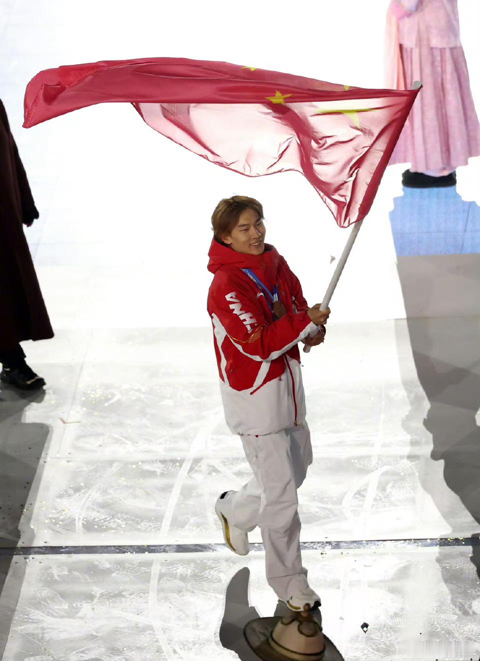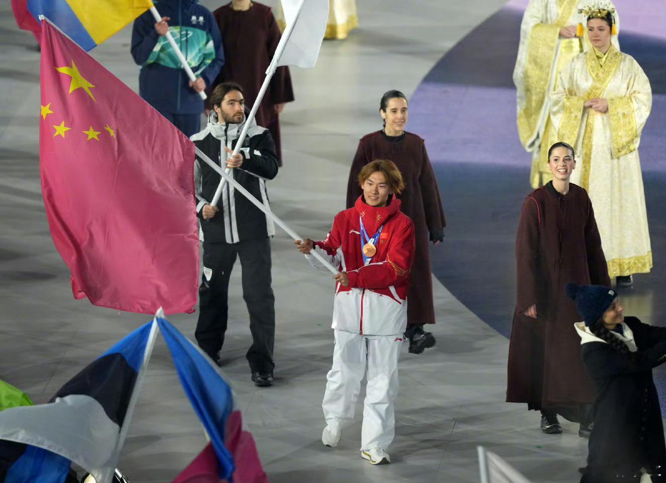 苏翊鸣手持五星红旗入场少年擎旗,中国红闪耀维罗纳!苏翊鸣手持五星红旗,担任中国代表团旗手亮相米兰冬奥会闭幕式,用实力扛起荣耀,这一幕太提气🇨🇳狐说体育恭喜苏翊鸣,恭喜中国健儿