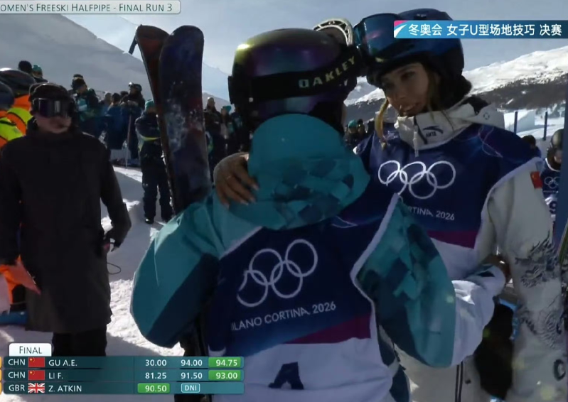 这是刚刚夺得冬奥会冠军的谷爱凌和亚军李方慧在相拥聊天,她们即是对手也是战友,如今她们都成功了,谷爱凌和李芳慧都太棒了,成功拿下了金银牌,也祝贺中国队实现冠亚军的包揽,恭喜谷爱凌和李芳慧,恭喜中国队!
