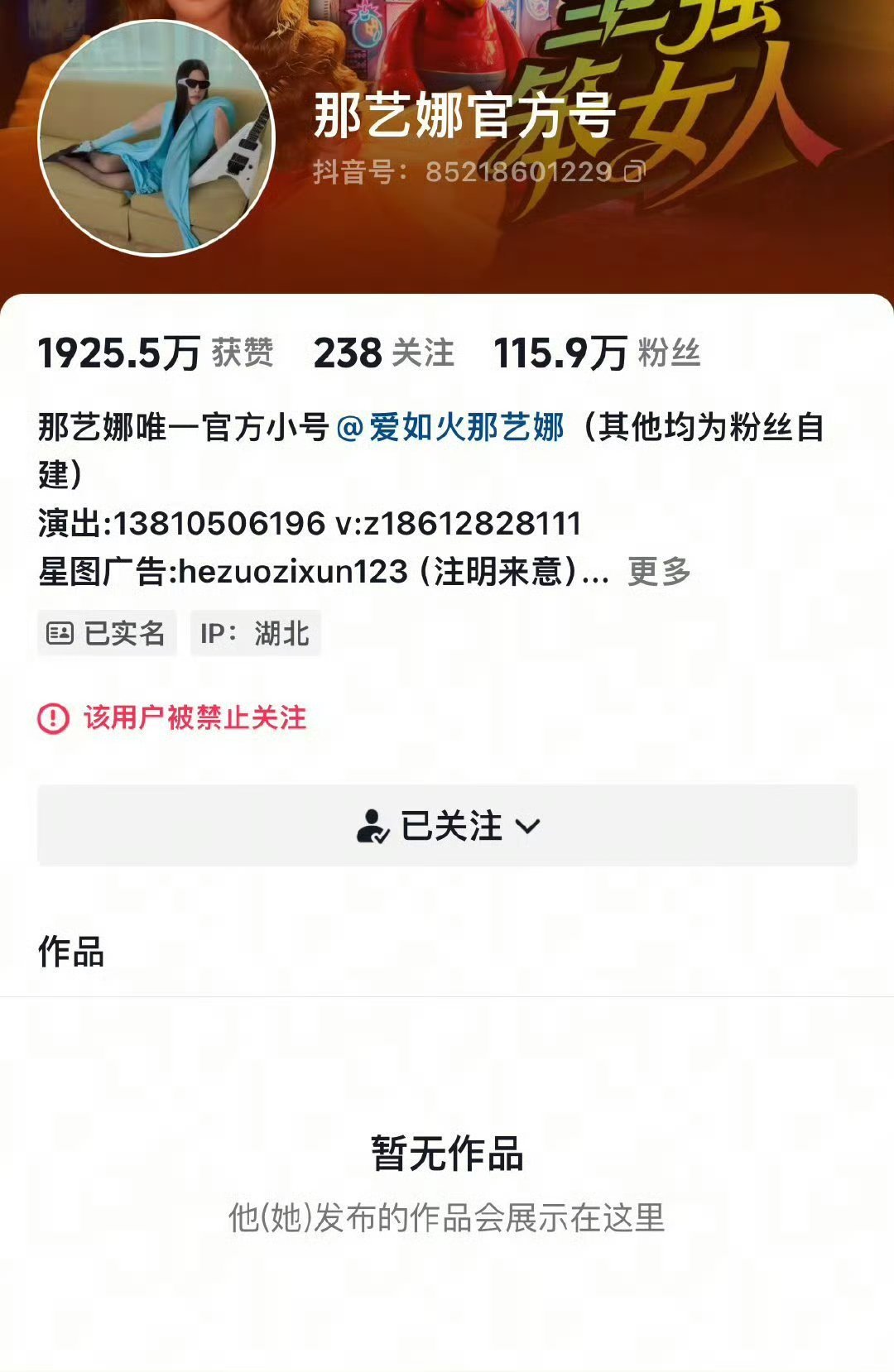 今日,#那艺娜账号被禁止关注#登上热搜。