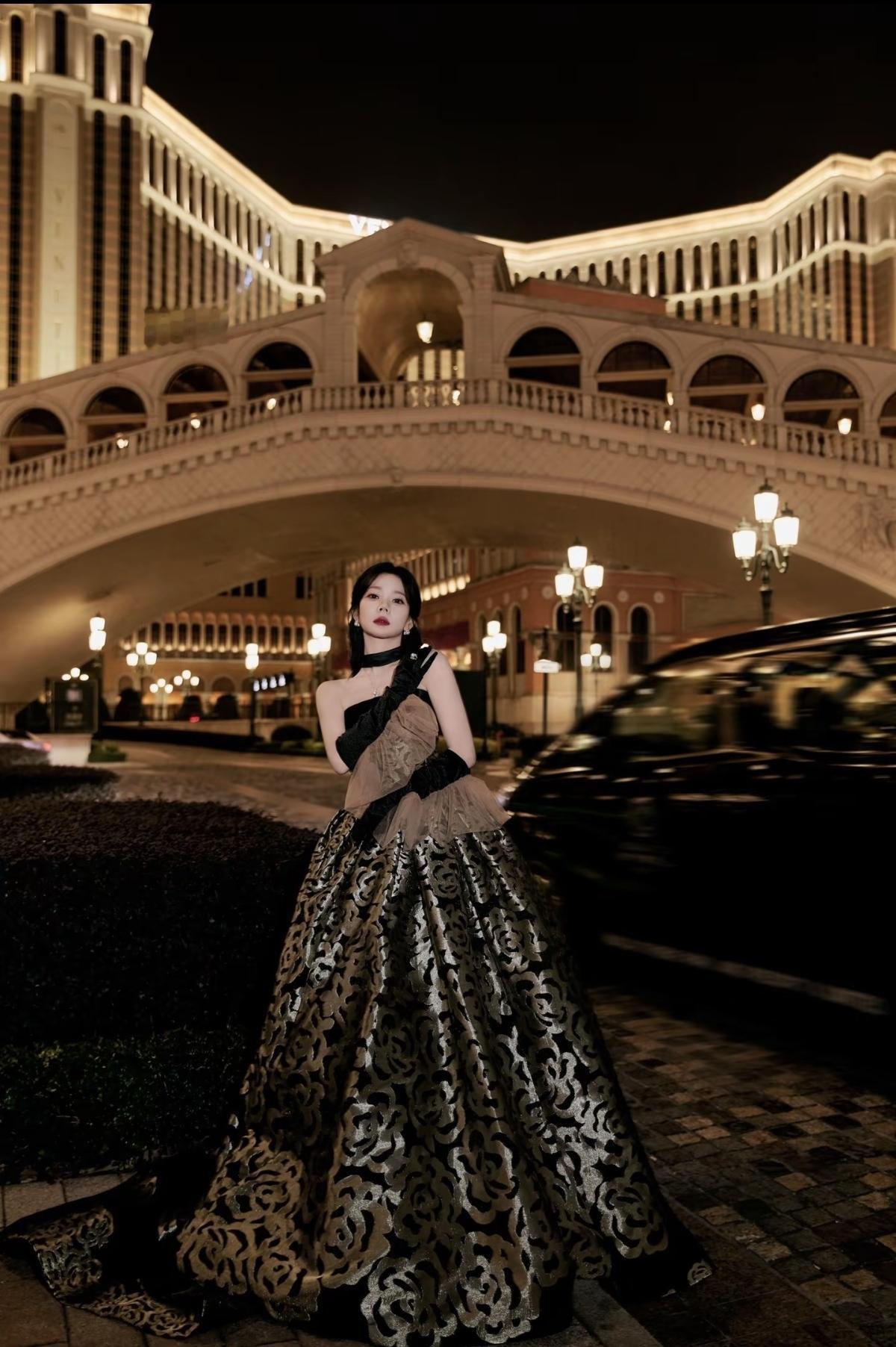 张紫宁身着黑金提花抹胸礼服亮相腾讯视频星光大赏,复古丝绒手套与颈间珠宝相映,鎏金裙摆流转间尽显优雅贵气,宛如从油画中走出的千金大小姐[玫瑰][赞]娱乐明星