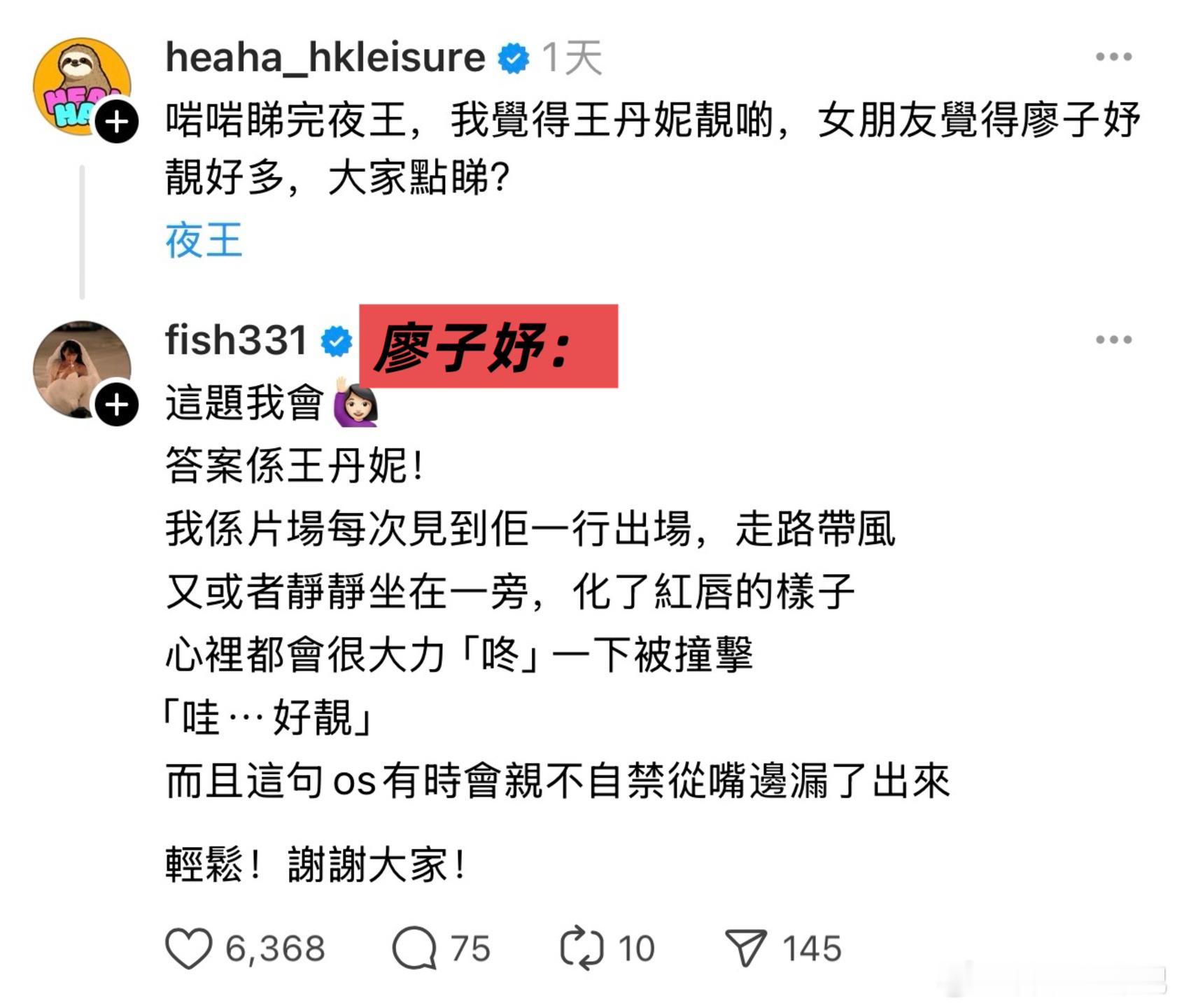 王丹妮和廖子妤谁更靓?廖子妤:「答案是王丹妮!」🥹