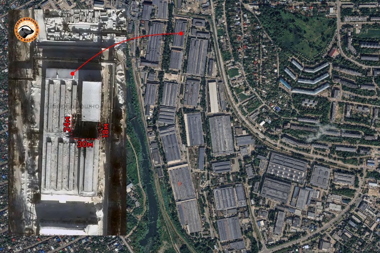 CyberBoroshno社区分析人士报道,乌克兰火烈鸟火箭弹袭击俄罗斯伊斯坎德尔导弹工厂摧毁了电镀和冲压车间。据称:“对沃特金斯克工厂的FP-5火烈鸟导弹打击导致一家车间屋顶出现约30×24米的洞。损坏长度不均:一侧约24米,另一侧约18米,宽度30米。” 参见下图。分析人员指出,破坏和倒塌的分布模式表明爆炸震中位于建筑内部,可能导致内部空间完全燃烧。此外,“与之前报道的22和36车间受影响完全不同的是,导弹击中了19号楼——电镀和冲压车间。” 该生产区负责金属冲压和成型、导弹本体部件制造及电镀部件——施加保护性和功能性涂层,并为最终组装准备表面。分析人士指出,进入此类工厂可能严重扰乱生产周期,因为它是导弹弹体的基本结构,并负责最终组装阶段的技术准备。