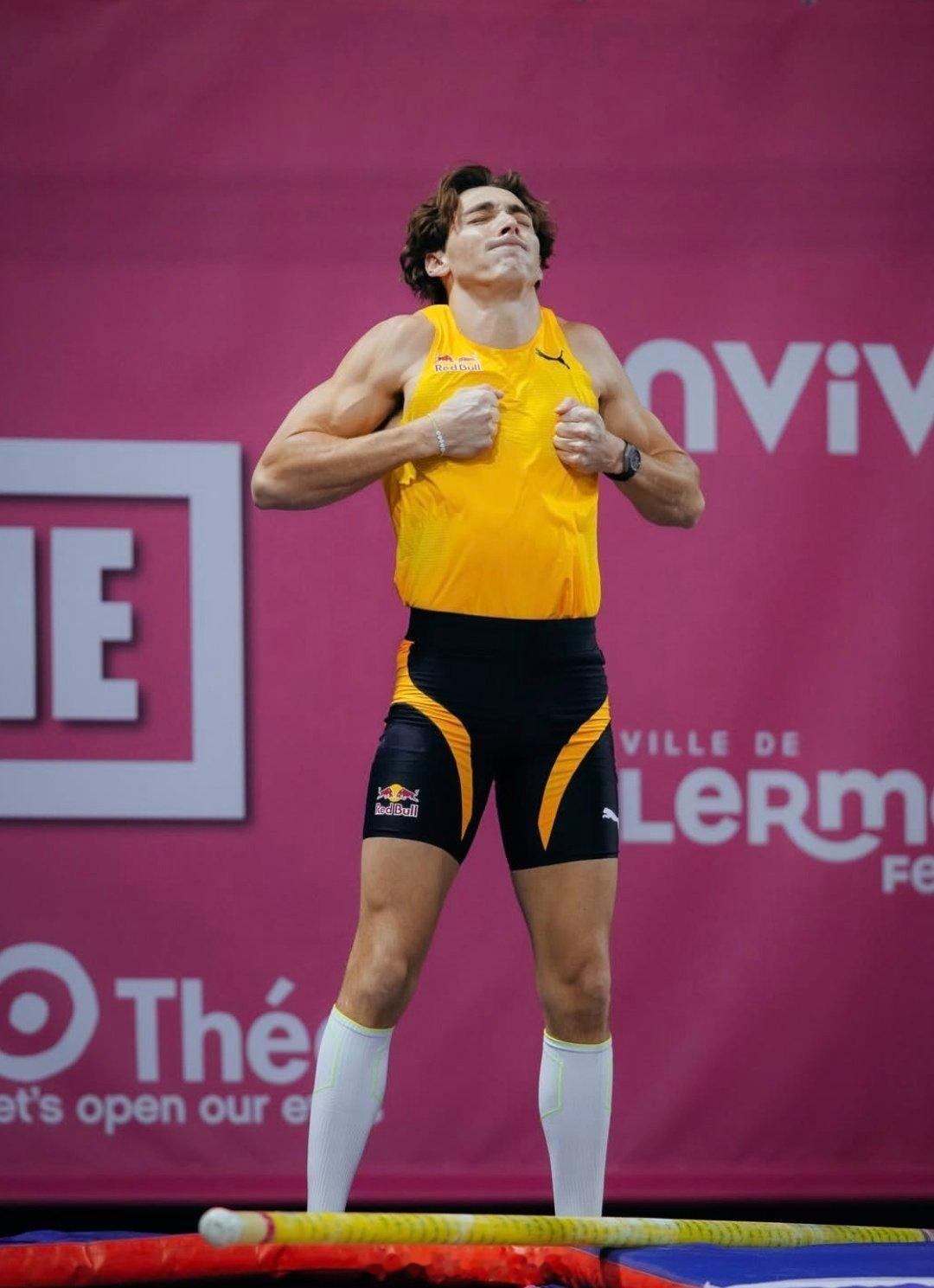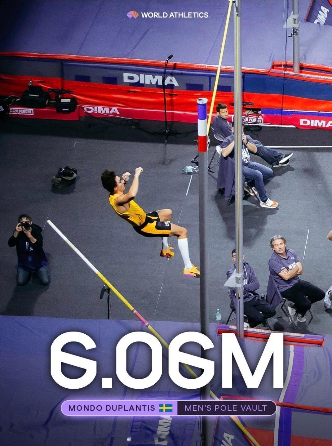 杜普兰蒂斯在室内巡回赛 法国克莱蒙费朗站,撑竿跳高全明星赛以6米06迎来赛季首秀夺冠。🇦🇺马绍尔也约过了6米大关🇬🇷卡拉里斯5米90获得第三位。田径说一哈田径