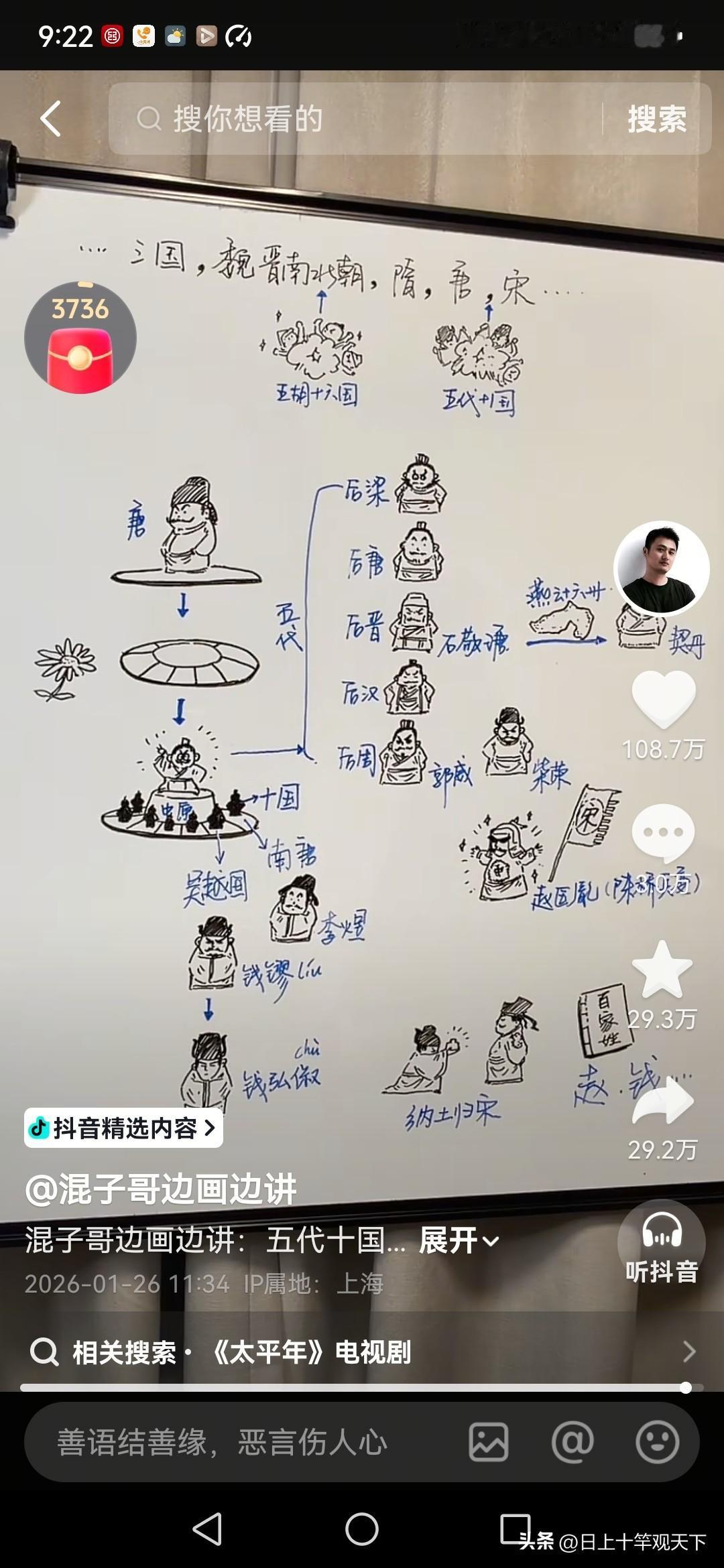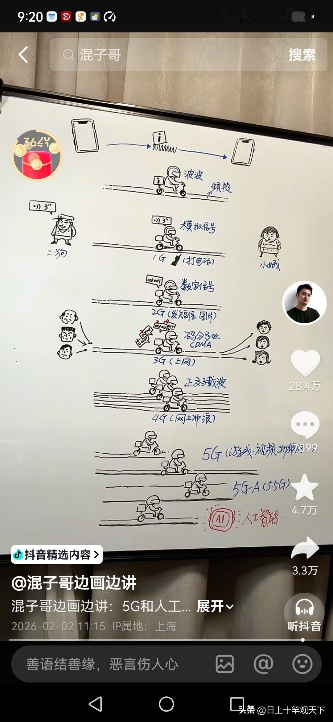 中年人让自己感觉充实的方式,就是每天都有点收获!不仅是金钱💰,还有智慧! 今天上午看了混子哥的三个视频,内容的信息量可真大! 神马! 5G、AI,还有五代十国! 看混子哥的视频,就像打开了脑洞,既能增长见识,又能拓宽眼界! 短短一分钟,感觉自己的脑容量又增加了,这种感觉还挺不错! 尤其是最后一个关于五代十国的视频,刚好我在看《太平年》, 借此机会又恶补了一下历史知识。人到中年,也得不断学习, 不然工作之后,在学校学的那点知识很快就会忘光! 大家到了这个年纪,还坚持每天学习吗?有没有什么特别的学习方法可以推荐? 其实我觉得像混子哥这种用有趣视频讲解知识的方式就很棒, 它把原本枯燥的内容变得生动形象,让人一看就记住了。 我还会在晚上睡觉前听有声书,听一些历史、科普类的,在放松中也能吸收知识。 另外,我加入了几个学习社群,大家会在里面分享自己的学习心得和资料。 有时候遇到不懂的问题,在群里一问,很快就能得到解答。 我也尝试过做学习笔记,把重要的知识点记下来,有空的时候拿出来翻翻,加深记忆。 大家不妨也可以试试这些方法,说不定能让学习变得更轻松。 而且学习真的是一件终身的事情,坚持下去,说不定哪天就能在生活中派上大用场!