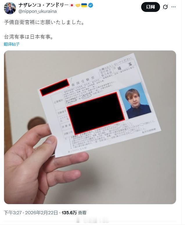 一个乌克兰人,在日本申请加入预备役,声称台湾有事就是日本有事,寓意要为日本去台湾打仗日本是他的祖国吗?最缺兵的难道不是他的祖国乌克兰吗?