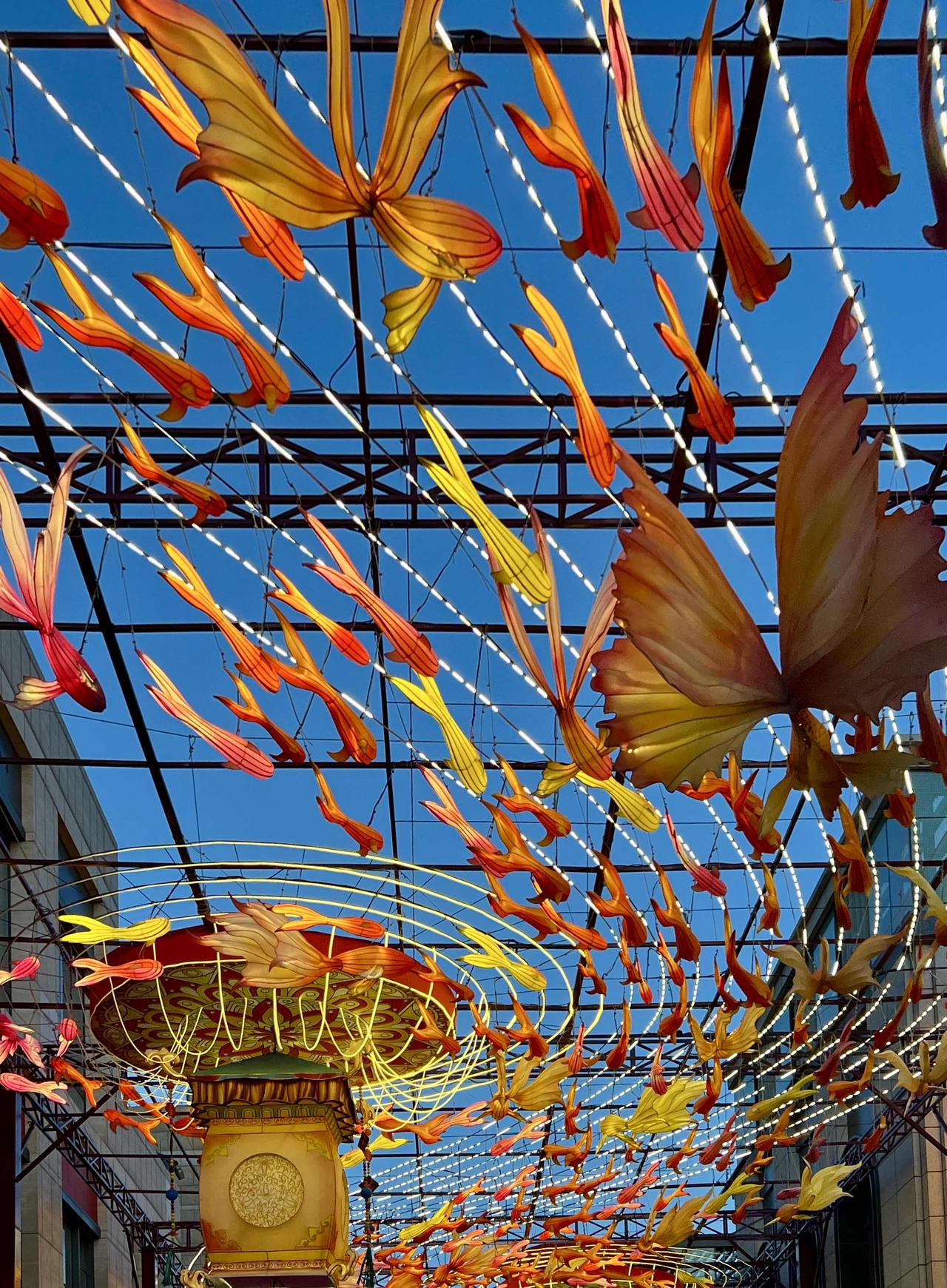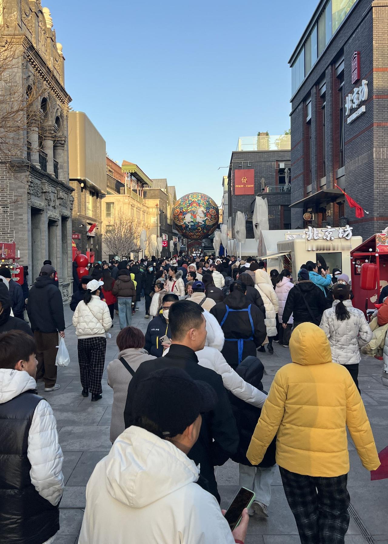 冷清的"北京坊"终于借势火了一把。春节期间的灯光秀秀出了人气。使馆人员兜售着本国的小商品,别有情趣。平日里闲置的商铺也都布置了年货,满满当当。整个廊坊头条一改往日沉寂,风风火火、热热闹闹……