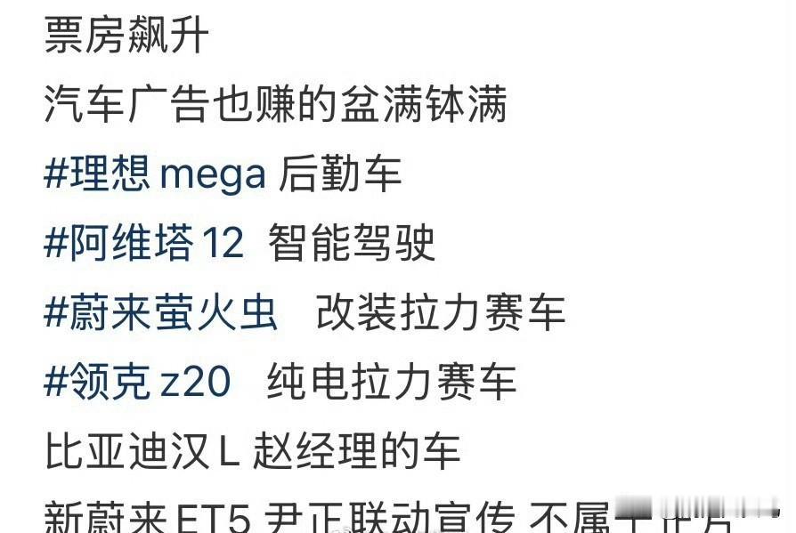 飞驰人生3赚麻了,有6家新能源车的植入。