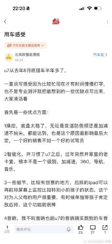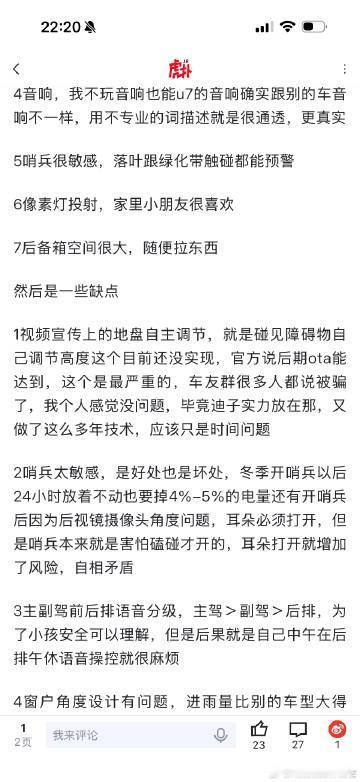 仰望U7车主总结的7个优点,5个缺点
