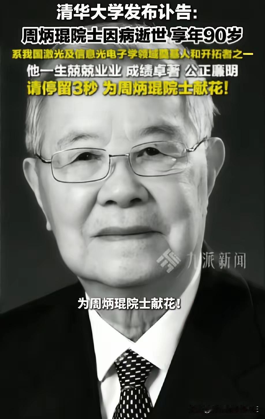 2026年2月19日,朋友圈里依旧声色犬马,有人带货嘶吼,有人吃瓜狂欢。 北京一家医院里,90岁的周炳琨院士走了。 这名字听着生吧? 可你现在刷屏不卡顿、几十块就能用上的百兆光纤,根儿都在他这。 当年在斯坦福,那是1983年,美国人拿着20万美刀年薪留他,那是多少人做梦都不敢想的天文数字。 周炳琨没接这个茬儿。一年后,他拎着箱子回了清华,继续捣鼓他的激光器。那时候国内工资多少?一个月百十来块人民币。搁现在的话讲,这叫"亏大了",可他大概没这么算过这笔账。 这事儿得往深了想。八十年代初出去的那批人,能回来的其实不多。美国实验室的条件摆在那儿,设备、经费、团队,要啥有啥。回来意味着什么?意味着从头再来,意味着在漏风的旧楼里做实验,意味着骑二八大杠上班的路上琢磨怎么把论文写在祖国的大地上。周炳琨偏偏选了后头那条路。 他研究的那个"半导体激光泵浦固体激光器",听着像绕口令,说白了就是给后来的光纤通信打了地基。没有这个,就没有后来的光纤放大器,没有波分复用技术——这些词儿老百姓听不懂,但你家里那根网线能跑得动4K视频,你刷短视频不转圈,根儿都在他那些年在实验室里熬的夜上头。 我有时候琢磨,什么叫"国之重器"?不一定都是造飞机航母那种轰轰烈烈的。周炳琨这辈子,干的其实是"修路"的活儿——在信息的荒原上,硬生生铺出一条能让数据狂奔的高速公路。他主编的那本《激光原理》,1980年出的第一版,到现在都修订到第7版了,学光电子的人都得啃这本书。一个人的学问,能变成几代人的教材,这叫真本事。 可这事儿的吊诡之处在于,周炳琨这样的人,活着的时候没上过几次热搜,走了也没人搞什么"全网哀悼"。热搜上挂着的还是那些带货翻车、明星离婚的破事儿。朋友圈里依然热闹,卖货的喊着家人们冲,吃瓜的刷着新瓜。你怪谁呢?也怪不着。人嘛,总要过日子,总要找乐子。 但心里头总归有点不是滋味。 那个年代的知识分子,身上有股劲儿,现在不太常见了。他们不太计较个人得失,不太琢磨"我回来能挣多少",想的是"我回来能干多少事"。周炳琨后来当了国家863计划专家组长,带着团队往前冲,一辈子拿了十几个国家级奖项。可你要是问他,这辈子最得意的是什么?没准儿他会说是那些学生。他带出来的人,现在散布在光电子领域的各个角落,有人成了学术带头人,有人创业做了企业。这叫什么?这叫桃李满天下。 他走的那天,北京挺冷的。医院外边该堵车还是堵车,写字楼里该加班还是加班。没多少人知道,一位90岁的老人走了,而他的名字,跟每个人手机里那个满格的信号、家里那根不卡顿的网线,紧紧绑在一起。 我突然想起一句话:有人负责热闹,有人负责干活。那些真正让这个国家往前走的人,往往是最沉默的那拨。他们不说话,活都干完了。 各位读者你们怎么看?欢迎在评论区讨论。