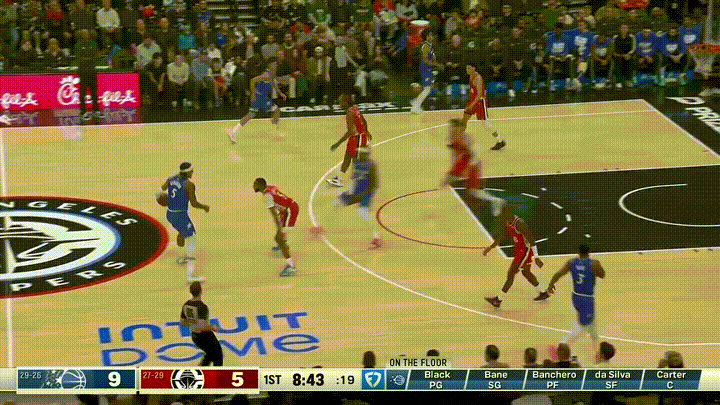 快船当家球星伦纳德真是太让人喜出望外了!在今天进行的快船和魔术的比赛中,当时比赛进行到了第一节的八分多钟,快船悍将小琼斯在一次防守回合中赏给了班凯罗一记无情血帽,伦纳德在得到球权后眼观六路看到了快下的队友桑德斯,只见伦纳德为桑德斯送上了一记跨越全场的妙传,助攻后者轻松暴扣得手。 老实说,我真的没有想到伦纳德竟然能够送出如此绝妙的长传,真是让人喜出望外。