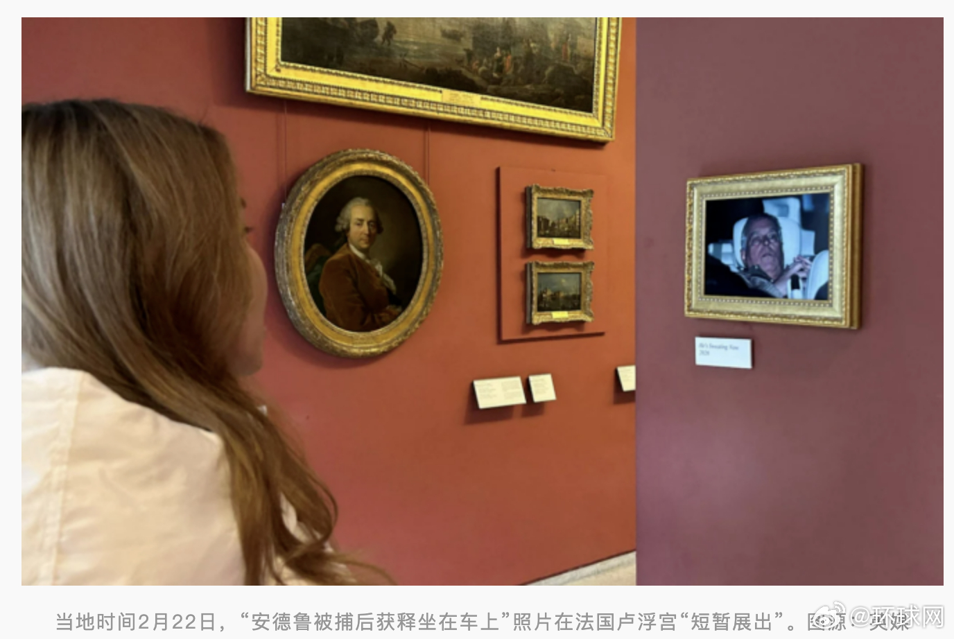 #安德鲁被捕后获释照一度被挂卢浮宫#【英媒:“安德鲁被捕后获释坐在车上”照片被挂在卢浮宫,随后被撤下】#安德鲁被讽正在流汗# 深陷美国富商爱泼斯坦案的英国国王查尔斯三世的弟弟安德鲁·蒙巴顿-温莎日前被捕,持续引发关注。据《每日电讯报》、天空新闻网等英媒22日报道,在这一背景下,一张显示安德鲁在被捕后获释坐在车上的照片,不仅登上了欧美各大媒体的头条,也短暂“登上”了法国卢浮宫。