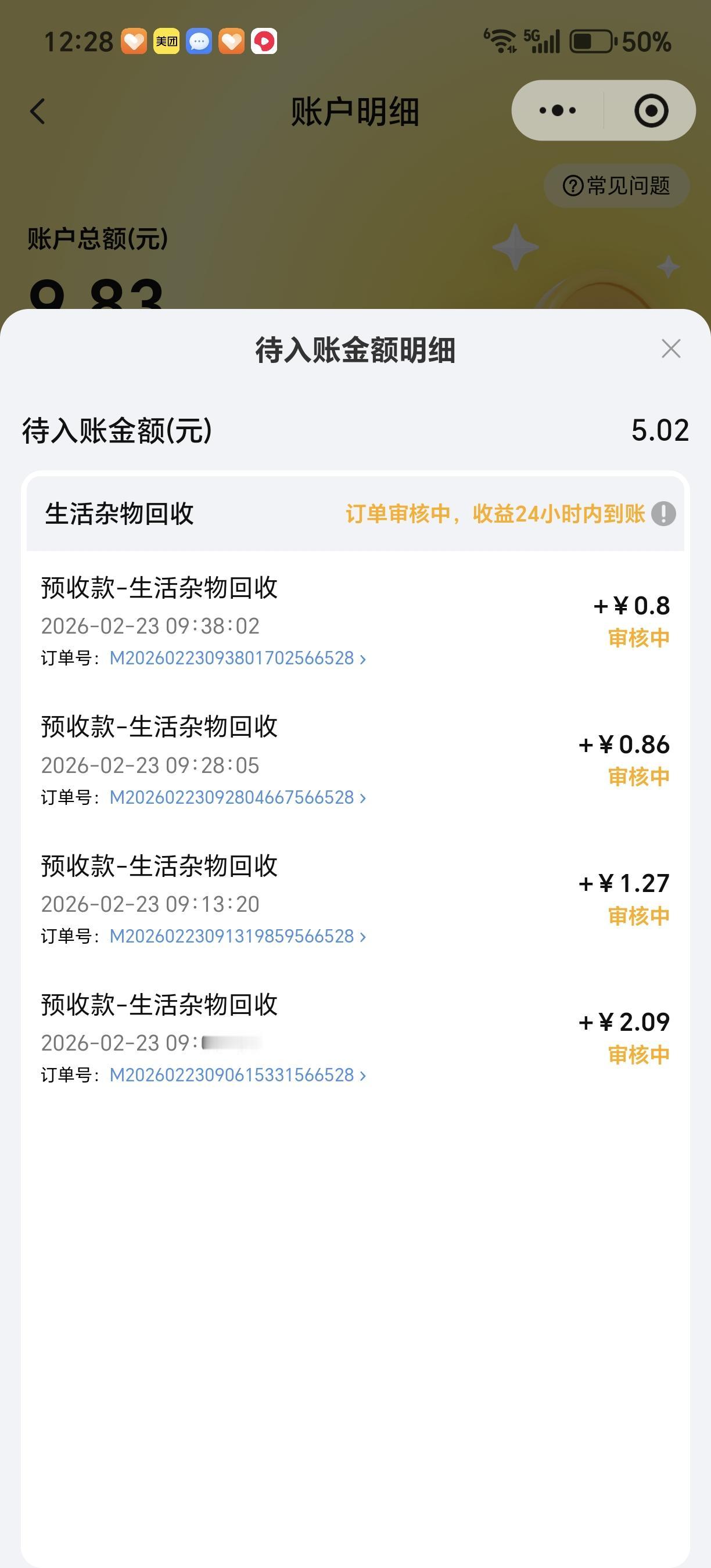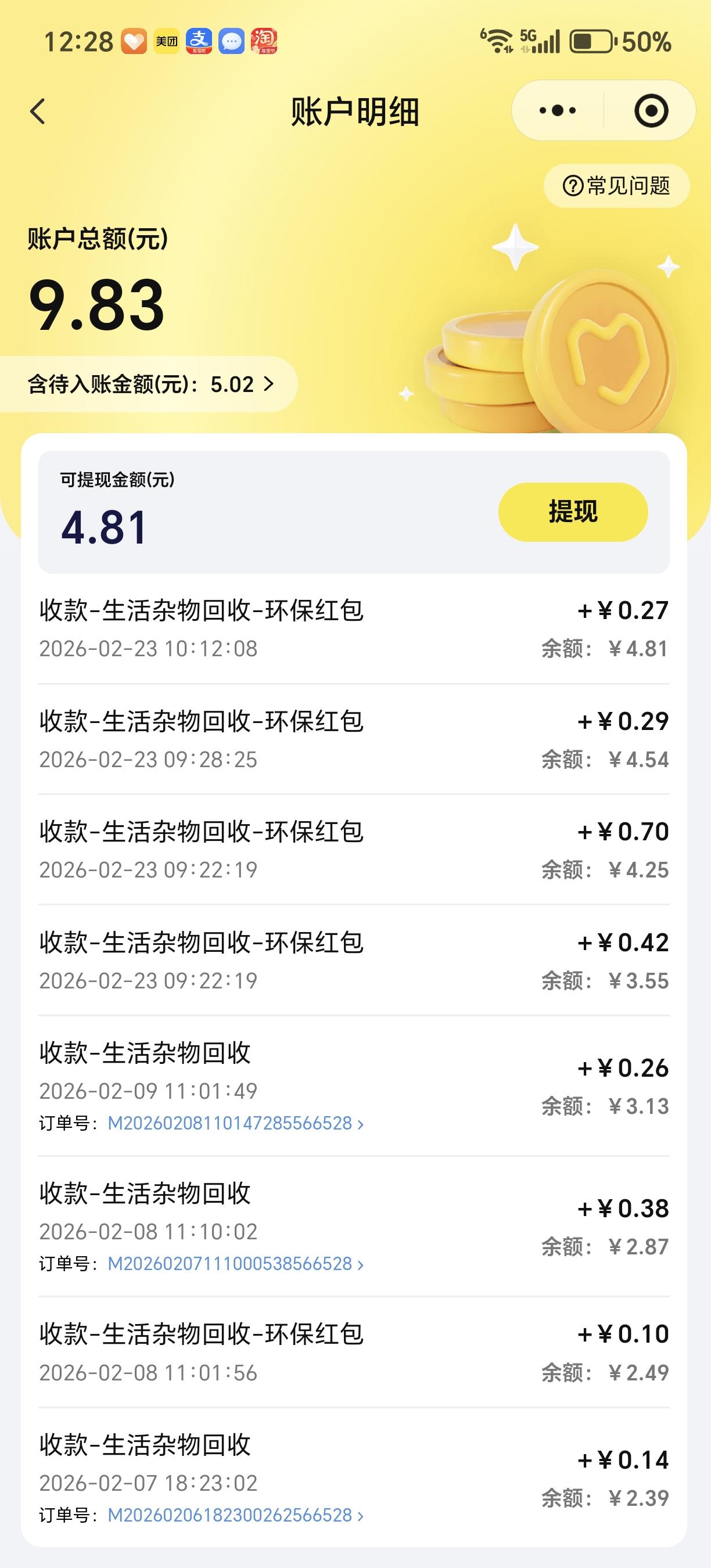 也就几块钱,2月份回收价格都是4毛一公斤,春节期间价格调整,补贴工作人员,平时是6毛一公斤。 我去投递时,还需要排队,大家都跟我一样,能回收的东西留着卖给回收机,变废为宝,不再往垃圾箱扔了。