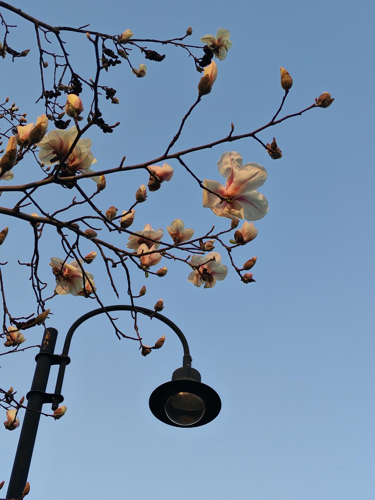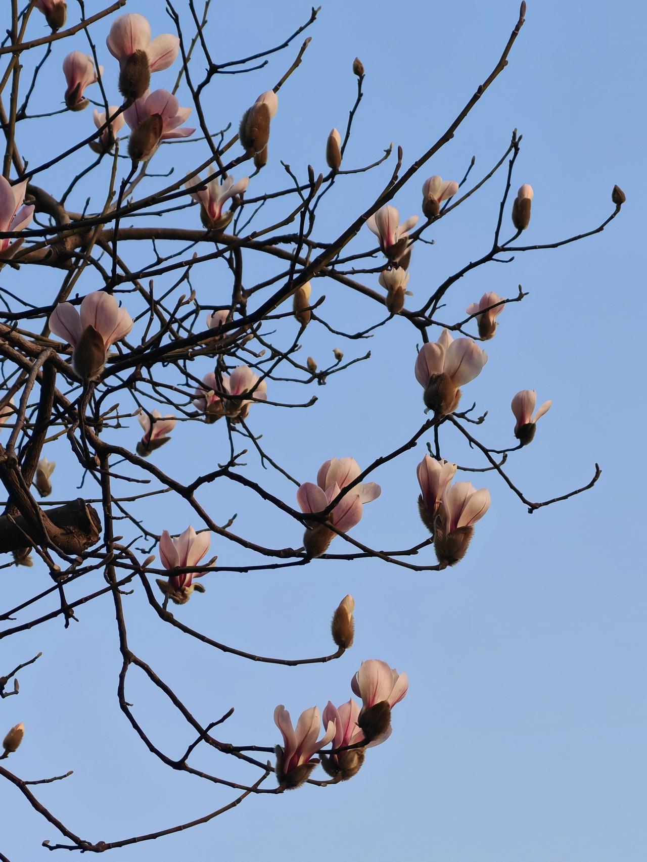 红玉兰还没到花期,过几天也会开。去年春天在华科大拍了很多红玉兰的美照,时间过得真