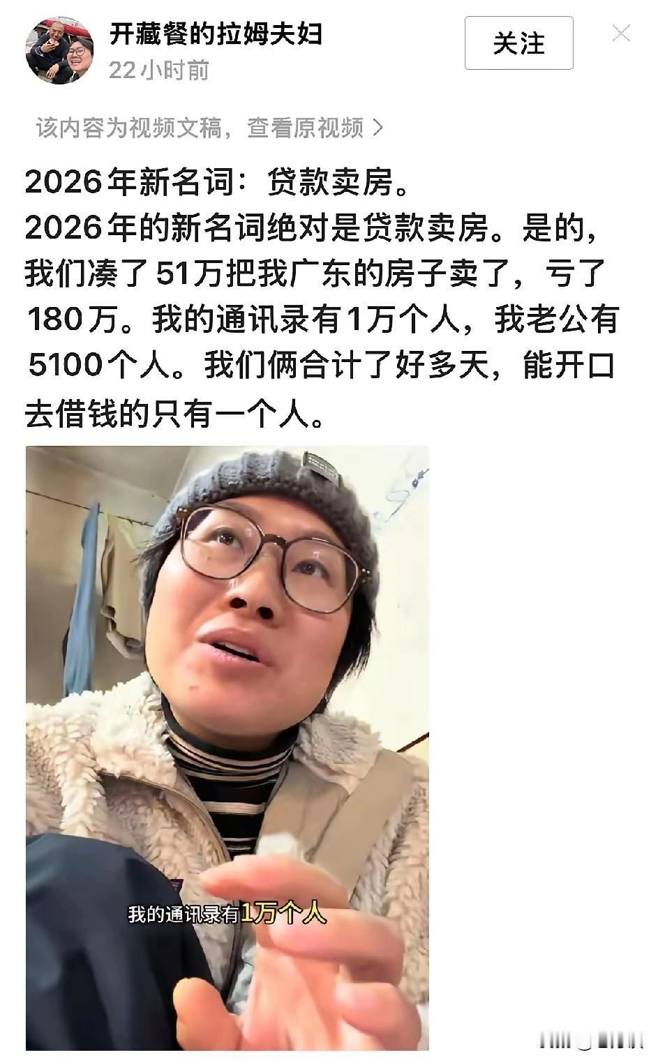 2026 年的新名词:贷款卖房。真的是这样吗?买房没有赚到钱,卖出去的时候还要借钱还银行贷款才能卖的出去,真的会如此玄乎!房价掉的如此离谱?不过想想也有可能,毕竟现在的出生率实在太低了,房子已经相对饱和了,买不起的照样还是买不起,买得起的都已经好几套甚至好几栋了,这些房子最终卖给谁呢!谁又会来接盘呢!只能不断往下调价,才有可能有刚需的购房人来捡漏而交给银行的贷款却不会少,为了卖出去只能借钱卖出去了,拿在手里要还的贷款越来越多,而自己如果没有收入来源,只会越陷越深,只能赶紧脱手。