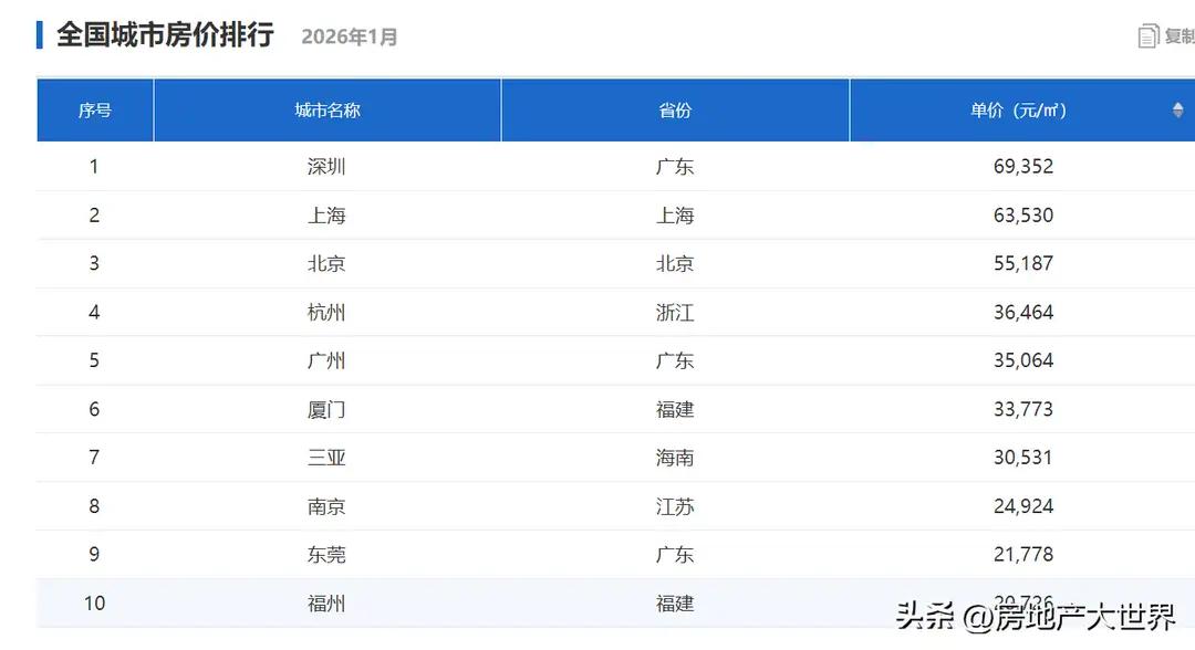 房价代表经济发展程度,全国前十,厦门,福州令人惊诧,北方第一强省无城市🏙入选!
