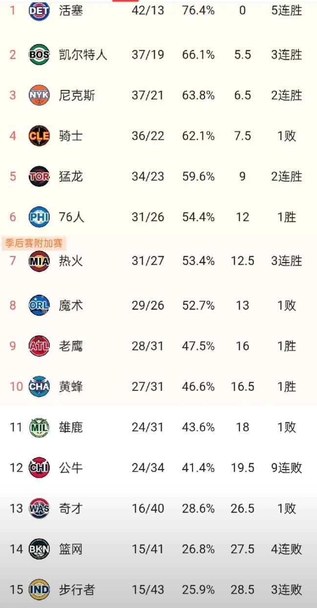 随着赛程的推进,东部格局也愈发明朗。