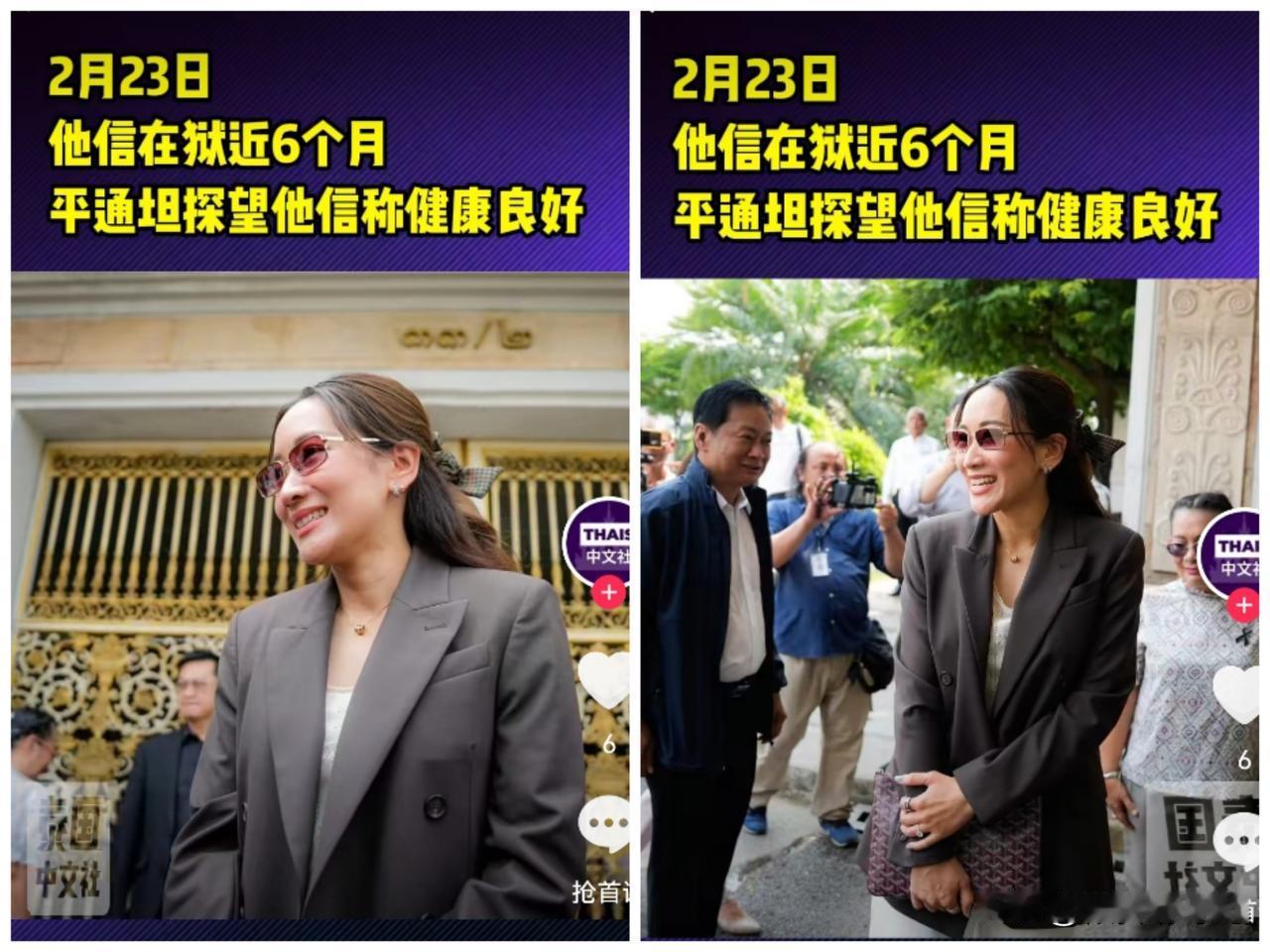 泰国消息 泰国前总理他信大女儿 萍通塔透露他信目前最新身体状况,称目前他信精神状况良好,同时对关于他信外甥育查南是否入阁做出回应。当地时间2月23日,萍通塔前往监狱探视他信,在结束后接受采访时做出以上表示,同时称再过两个星期他信就入狱满6个月了,萍通塔称此次会面主要以日常生活以及相互鼓励为主,并为讨论政治内容,她称关于育查南是否入阁,是否成为阿努廷内阁部长将由为泰党自身所决定,她此次与他信并未讨论政治内容,也没有透露出他信对目前泰国状况任何看法。之前他信仅表态,为泰党是否加入联合政府,是属于政党自身所做的决定,他仅以普通人身份关注此事。
