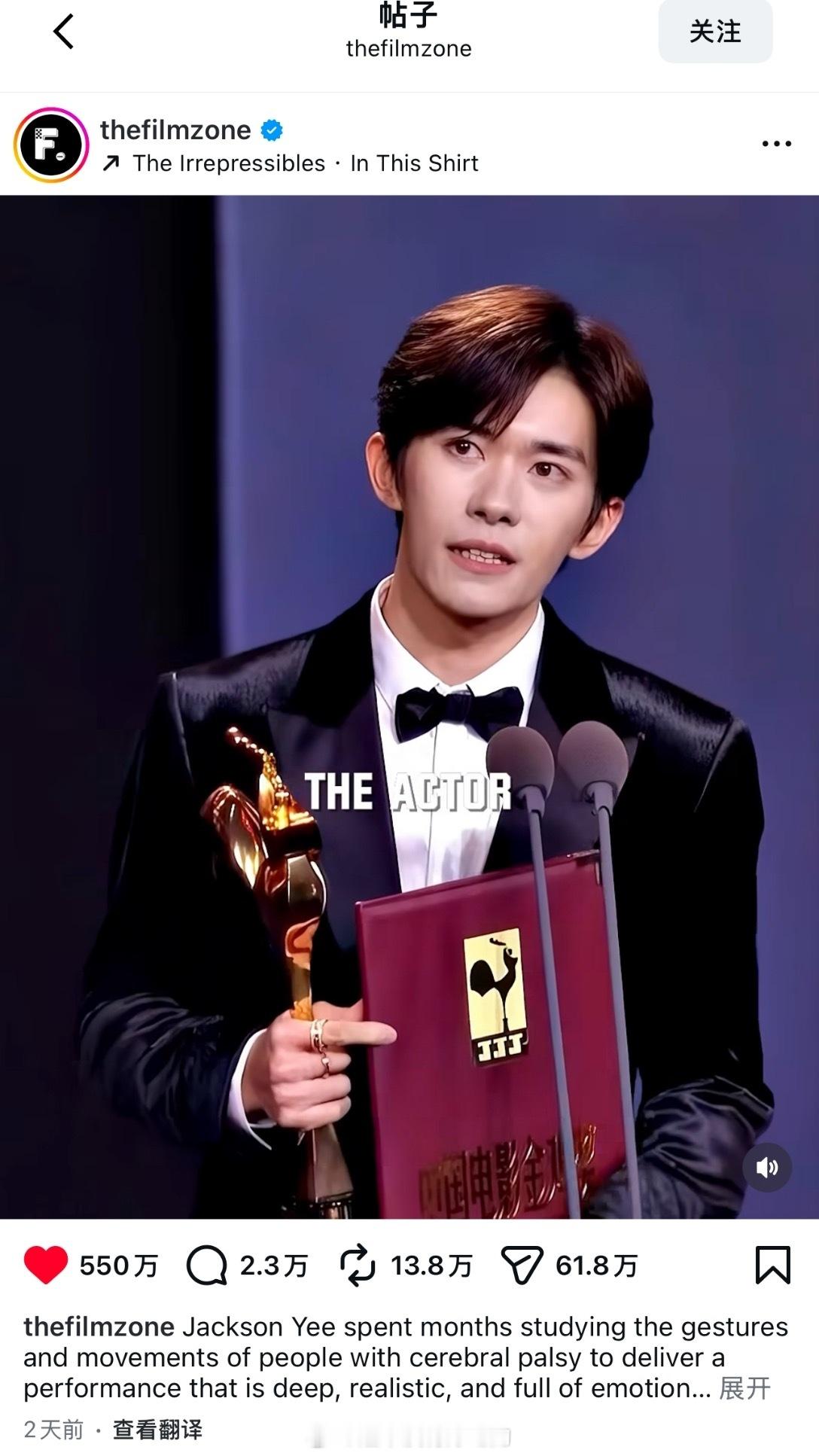 易烊千玺在国外大爆了!非本人ig号,纯电影博主号,仅靠演技一天外赞400w+,目