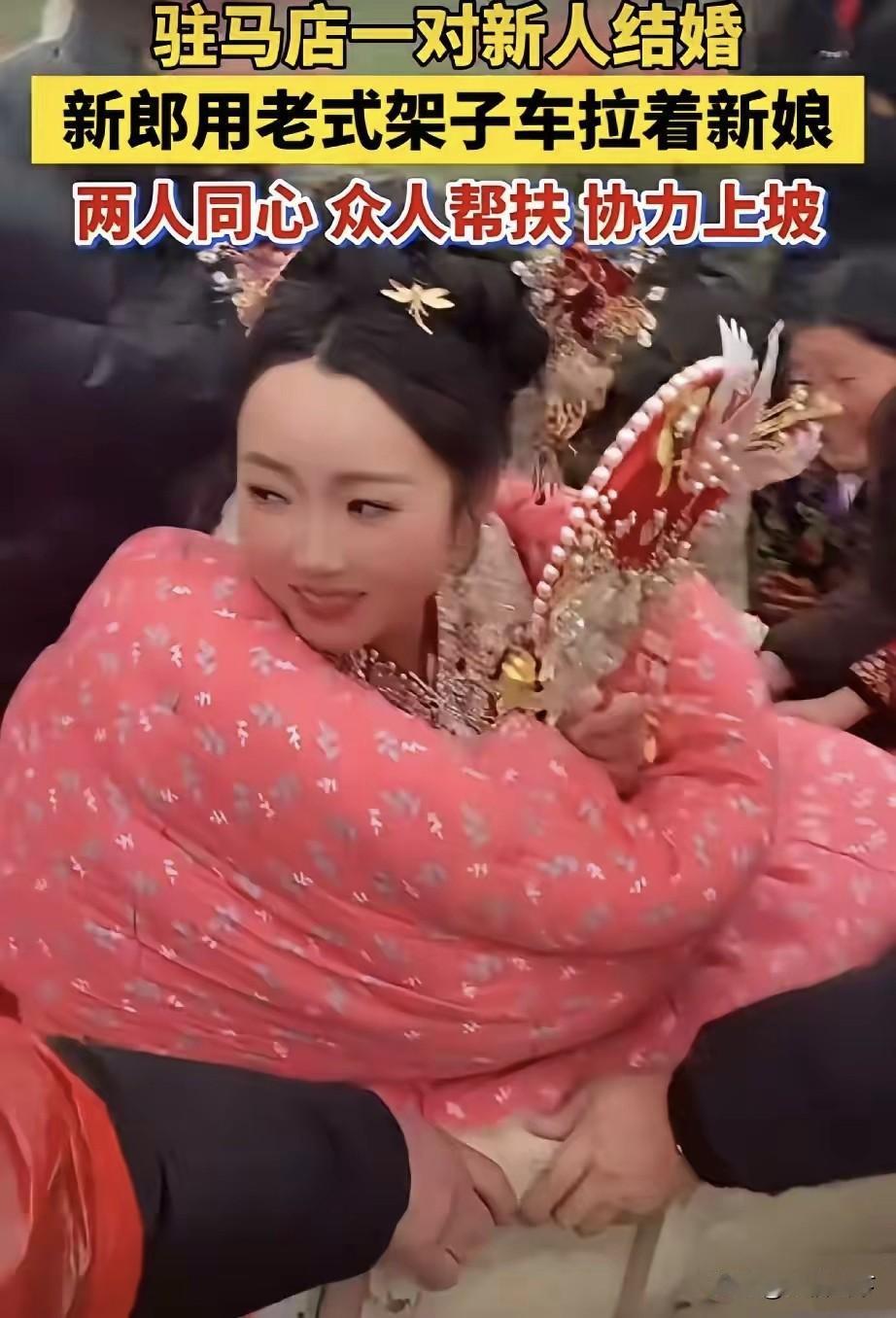 架子车当婚车,众人推车上坡:这才是中国式浪漫🌹!最近,河南驻马店一对新人的婚礼