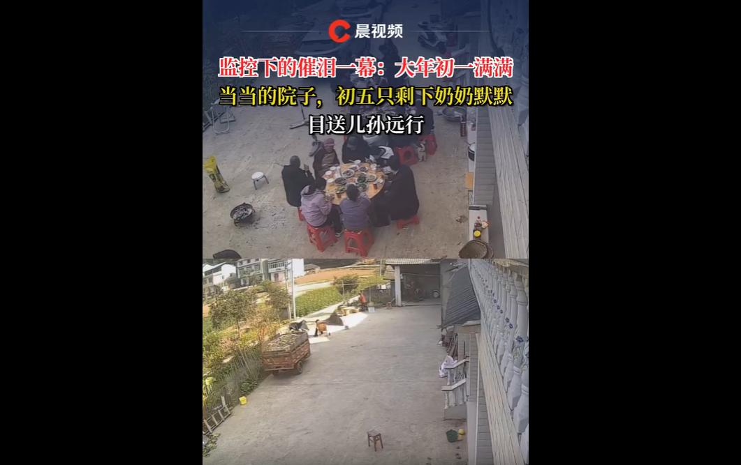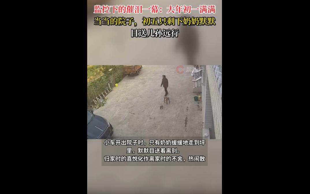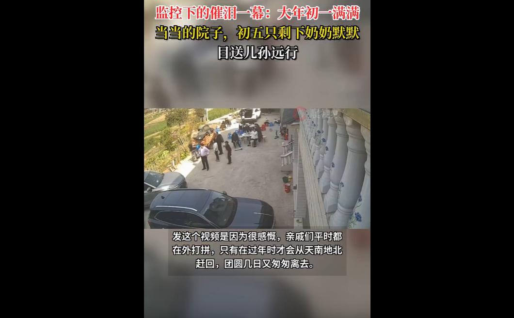 近日,四川绵阳一户人家大年初一院子里有 43 人团圆,年后亲人陆续返城,初五只剩老人留守。 监控拍下从热闹到冷清的对比,戳中无数在外打拼者的心声,令人心酸。 这一幕从热闹到冷清的强烈反差,道尽了当代中国人最真实也最无奈的过年图景 —— 我们用 300 多天的等待,只换来短短几天的相聚,用千里奔波的团圆,换回长久的孤单守望。 最催泪的,从来不是欢聚时的热闹,而是曲终人散后的寂静。 一大家子从天南地北赶回来,有人驱车二十多个小时,跨越山川湖海,只为回家吃顿年夜饭。 院子里坐满人的时候,老人脸上是藏不住的笑容,忙前忙后,恨不得把所有的疼爱都塞进饭菜里。可年一过完,儿女孙辈又要各奔前程,刚刚暖起来的家,瞬间又冷了下来。 可越是这样,越让人心疼。 我们努力打拼,是想让老人过上更好的生活,可到头来,给了他们物质,却给不了最珍贵的陪伴。 我们以为过年回家几天就是尽孝,却不知道,老人真正想要的,不是多好的衣食,而是有人说说话、有人在身边、有人让家里有点烟火气。