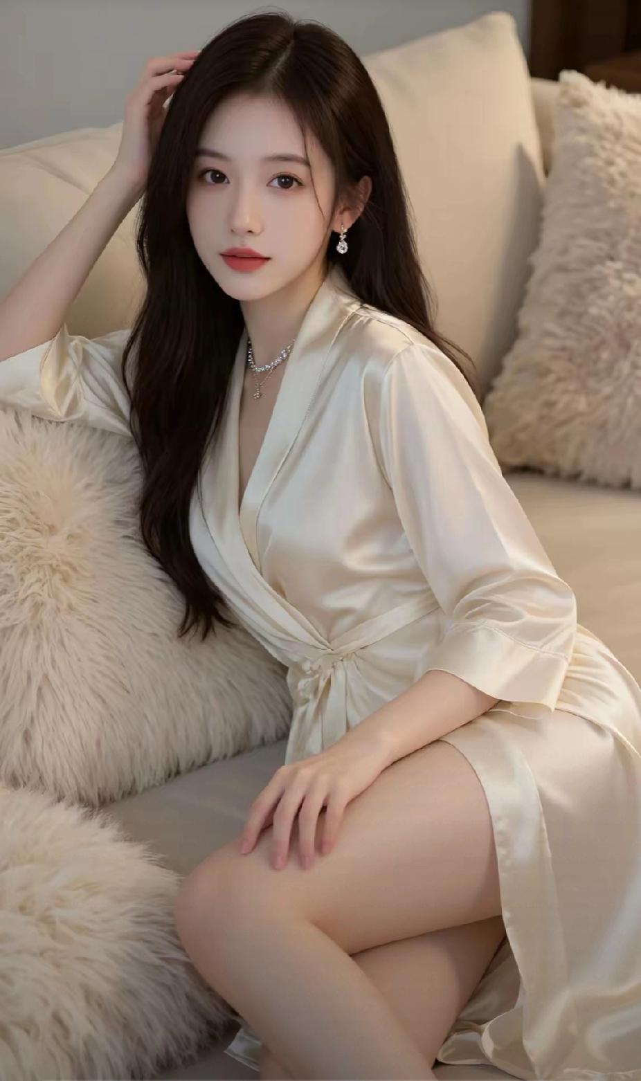 温柔优雅的居家穿搭,丝滑睡衣与毛绒靠垫的完美搭配,尽显舒适与时尚。纯天然美女系列