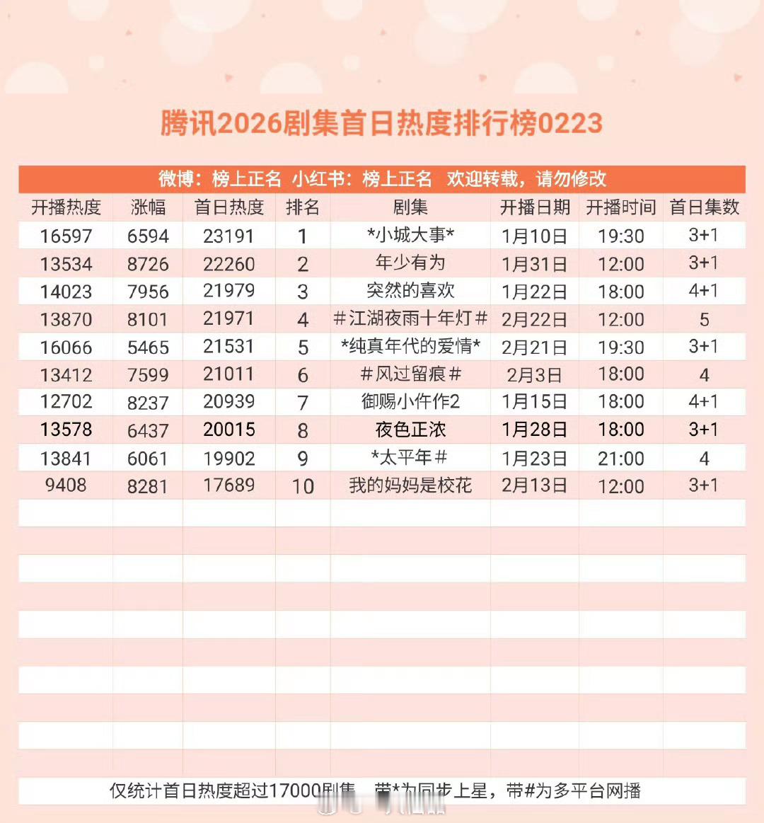 腾讯2026剧集首日热度排行榜0223赵丽颖《小城大事》登顶第一,牛比