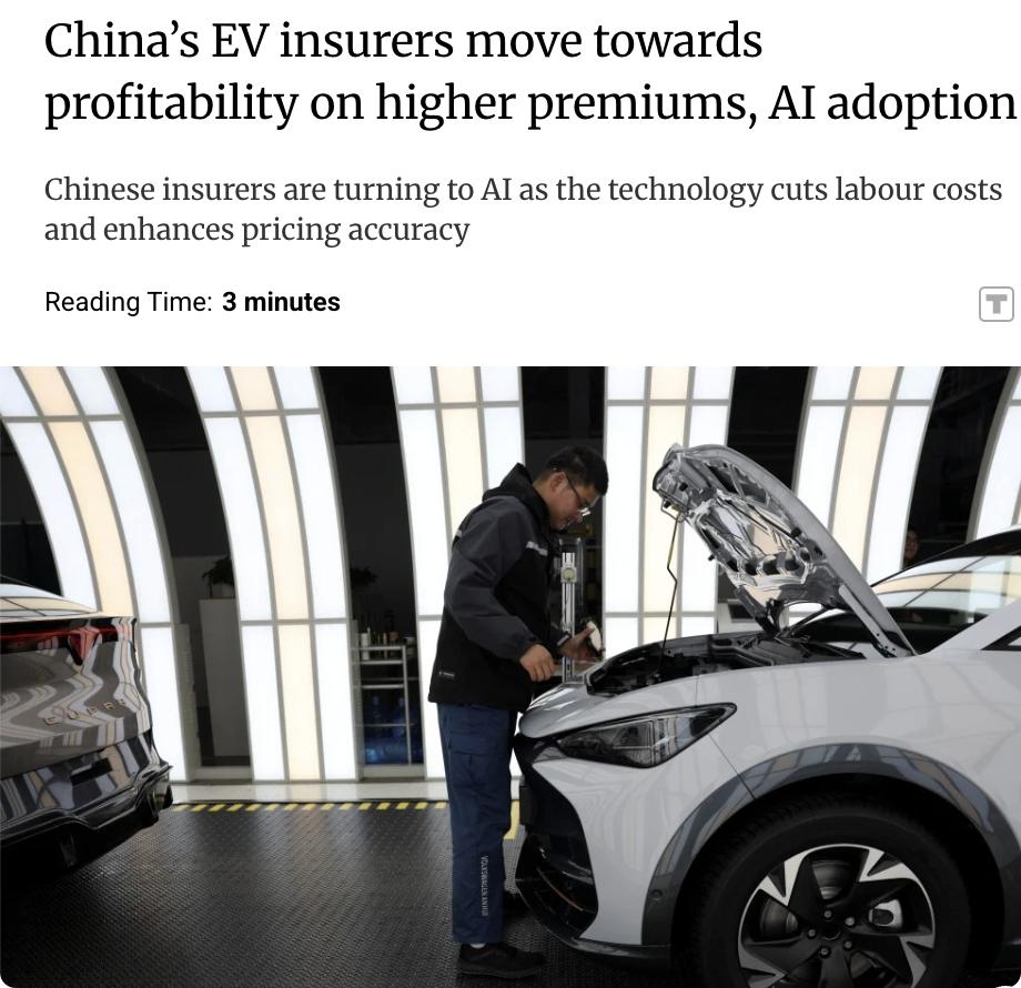 外媒:中国电动汽车(EV)保险商有望在2026年实现盈利。2024年,中国内地保险商在电动汽车保险业务上亏损57亿元人民币(约合8.25亿美元),但2025年EV保险保费收入超过2000亿元人民币,同比增长30%。 随着保费提高、智能定价机制和理赔效率提升,EV保险业务前景向好。人工智能技术的应用降低了人力成本,提高了定价准确性,推动了EV保险业务的盈利。 行业专家表示,保险业务的盈利将促使EV保费降低,从而加速中国道路上的电动化进程。