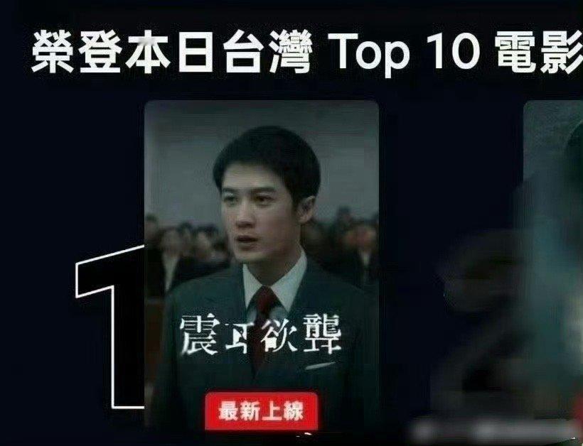 檀健次《震耳欲聋》网飞,台湾排名:TOP 1(电影类热播榜),香港排名:TOP