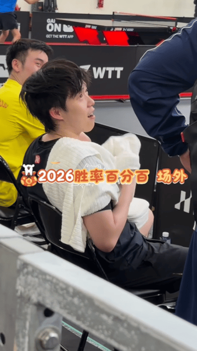 王楚钦笑着给孙逊说“2026胜率百分百场外”,给小牛一个666 2.23日,王楚钦在训练场训练,孙逊给陈垣宇做场外回来, 陈垣宇3-2达科,顺利晋级, 王楚钦边擦头发边说,“2026胜利百分百”, 孙逊说“守着你,可不得百分百嘛” 师徒开启互相吹捧模式,哈哈哈哈。 训练的时候,头哥给小牛比了一个666, 情绪价值拉满。 接球时,也就发出一声超大的“啊”声。 明天晚上的比赛加油哦。