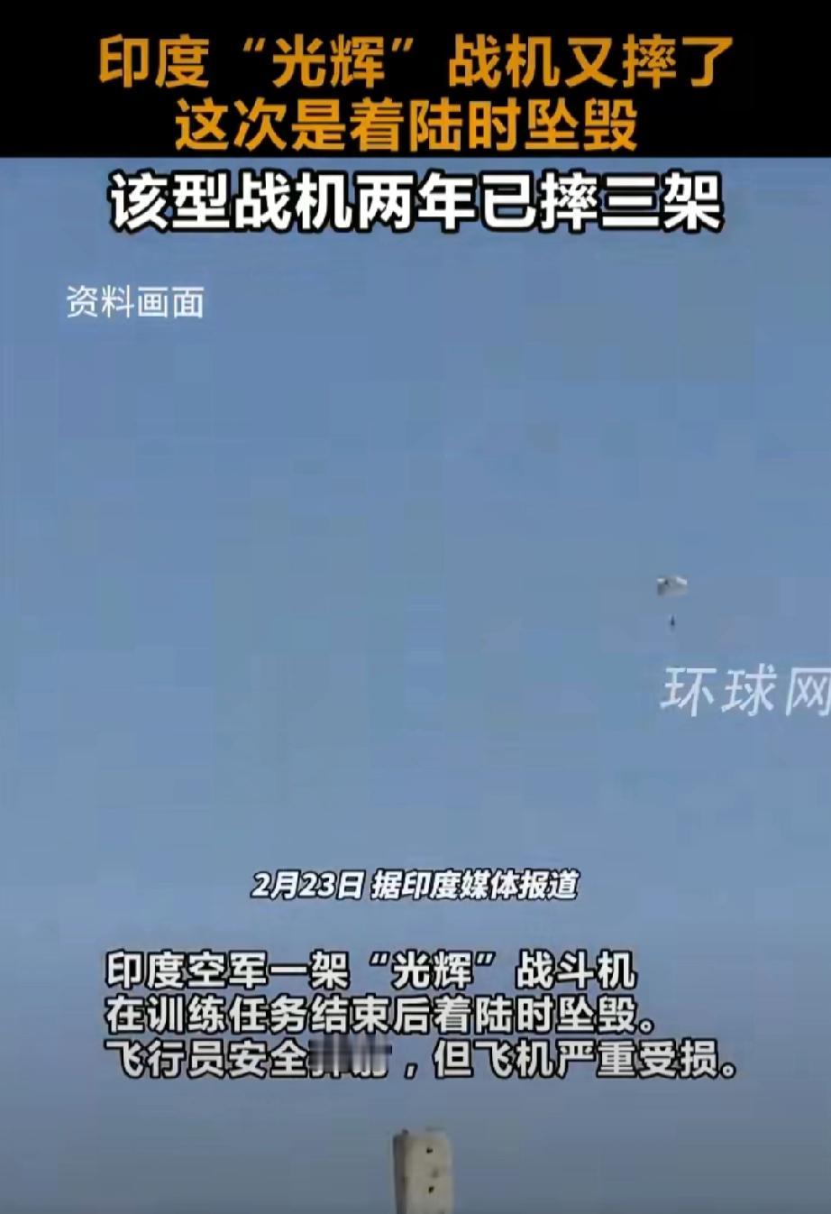 两年摔3架、停飞全部!光辉战机,彻底把印度军工底裤扒光了 2月7日,印度空军一架国产光辉战机在拉贾斯坦邦着陆时突然失控,刹车失灵、冲出跑道、直接摔进壕沟,整机报废。 飞行员靠弹射捡回一条命,但这已经是光辉战机两年内第3次重大坠毁。 更恐怖的是一个扎心数据: 印度空军目前仅装备30架单座型光辉,短短两年摔掉3架,事故率高达10%,是国际主流战机安全标准的20倍以上! 迫于压力,印军已紧急停飞全部光辉战机,全面排查系统性故障。 这架被印度吹上天的“国产之光”,到底有多离谱? 发动机用美国、雷达买以色列、弹射座椅靠英国,号称自主研发,实则是万国零件拼装的“缝合怪”。 40年磨一剑,机身超重20%,飞控不稳、起降缺陷、漏油频发,此前迪拜航展摔机前,甚至被拍到地勤用纸袋子接漏油,堪称全球军工笑话。 本想靠着光辉打响“印度制造”,结果越摔越惨: 亚美尼亚取消12亿订单,越南、阿根廷转头选择枭龙,海军拒收、空军嫌弃、国际口碑彻底崩盘。 真相很残酷: 没有完整工业体系,再豪华的拼装也只是空中楼阁。靠买零件堆不出国防实力,靠口号撑不起大国底气。 光辉战机的连续坠毁,不是意外,是印度军工虚浮的必然结局。 国际 军事 印度战机 耗30年研制,光辉战机啥水平?