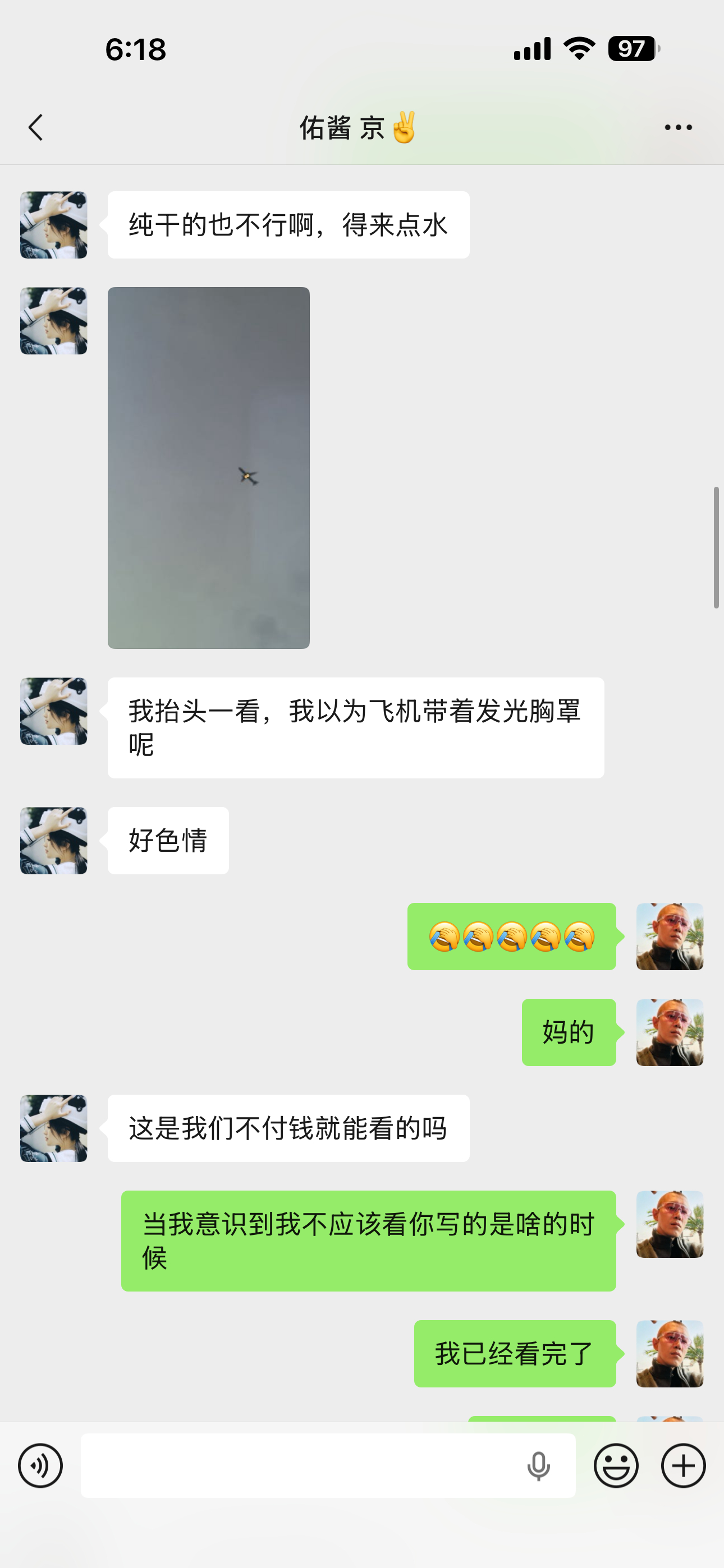 本来天天看完书抬头仰望一下飞机是个很好的休息结果看了发给我的话以后,我连这
